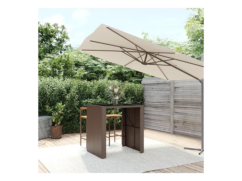 Table de bar et dessus en verre marron 105x80x110 cm poly rotin
