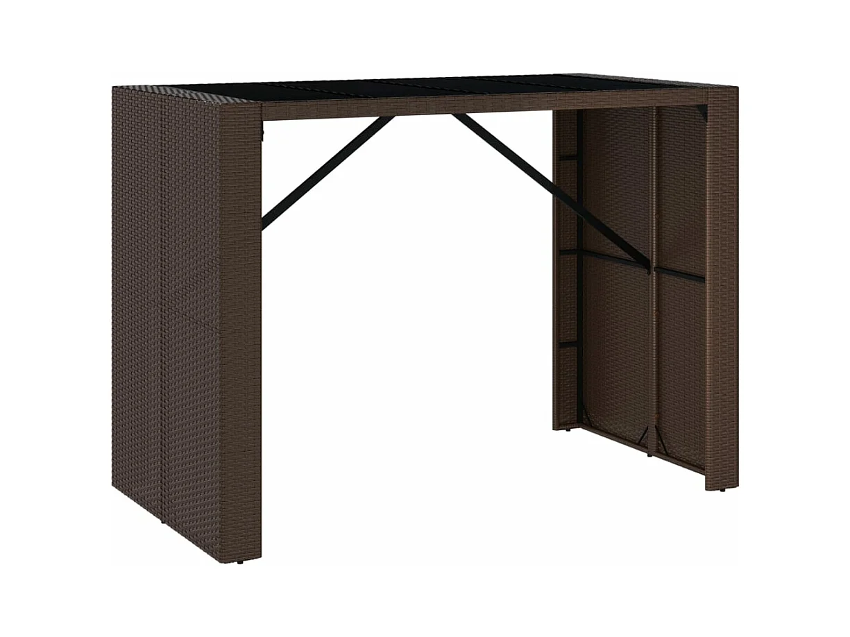 Table de bar et dessus en verre marron 180x70x110 cm poly rotin