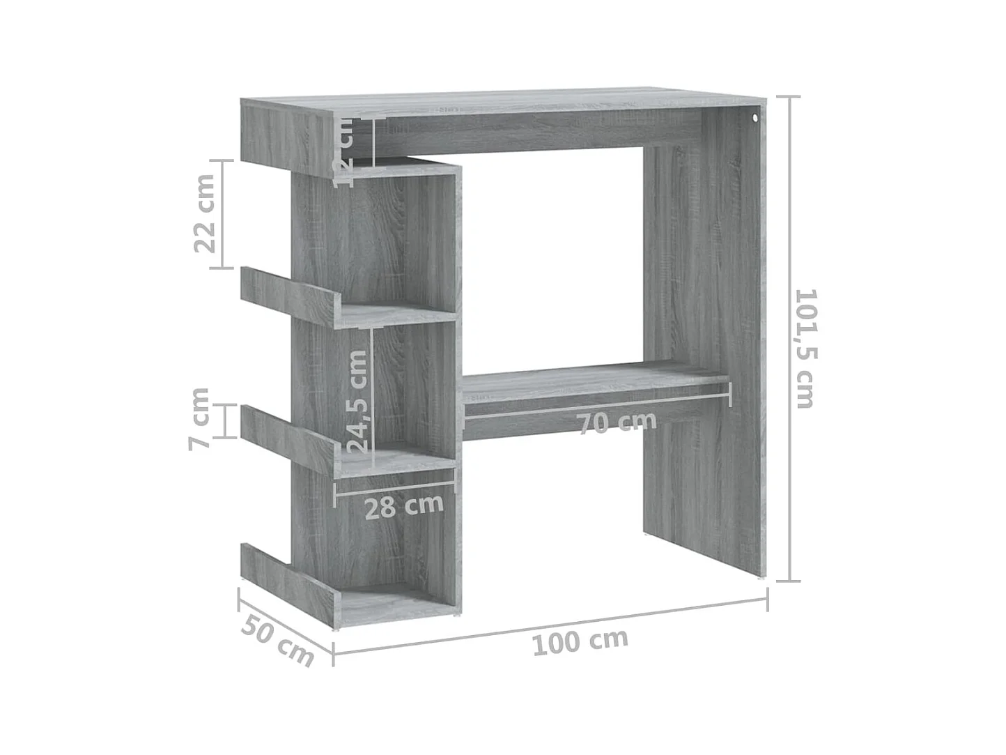 Table de bar et étagère de rangement Sonoma gris 100x50x101,5cm