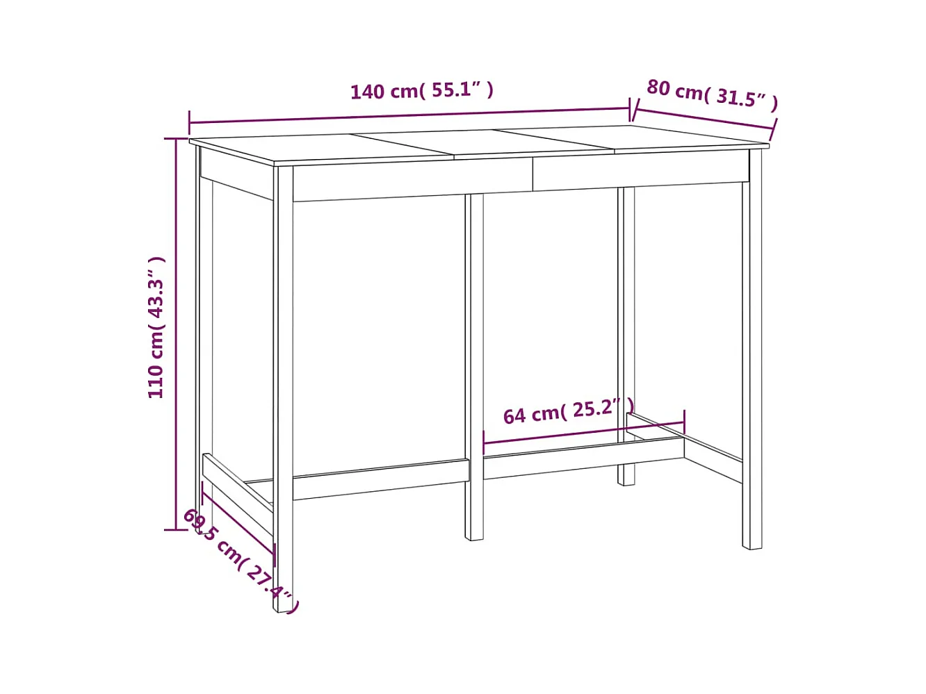 Table de bar Marron miel 140x80x110 cm Bois massif de pin