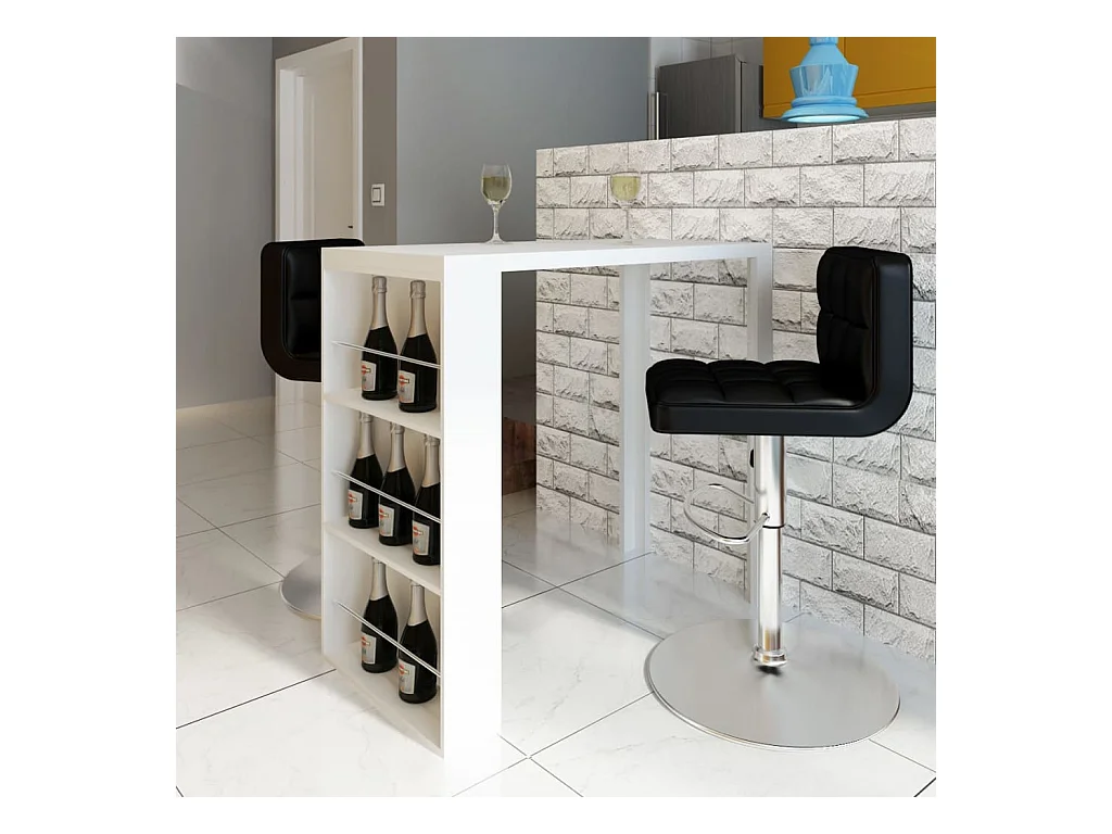 Table de bar MDF avec casier à bouteilles Blanc haut brillance