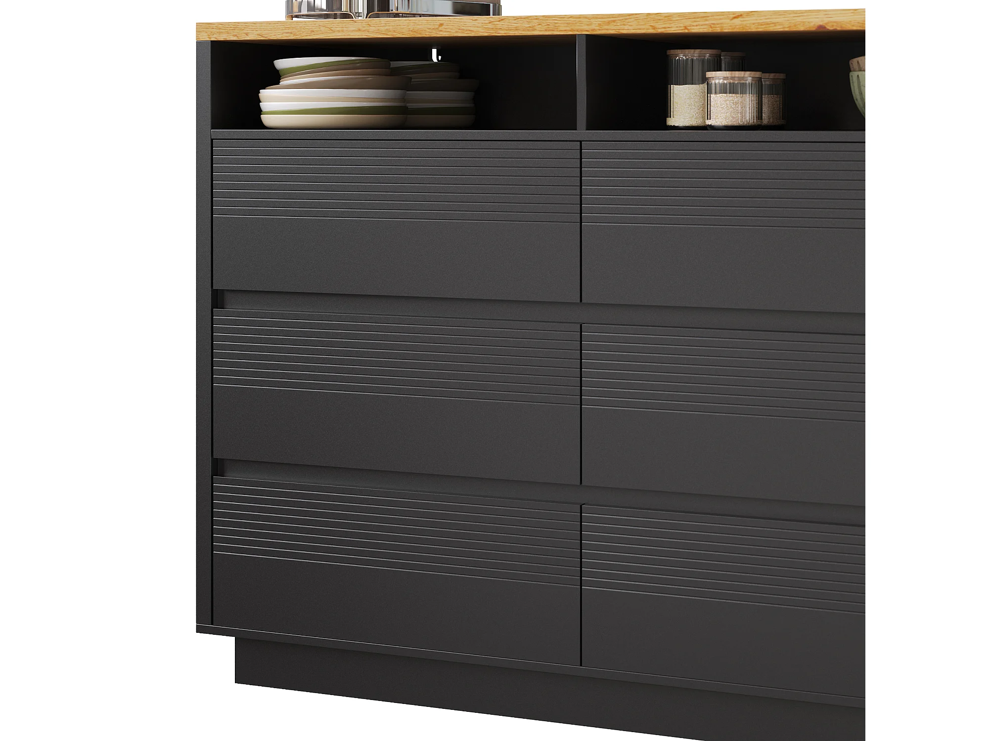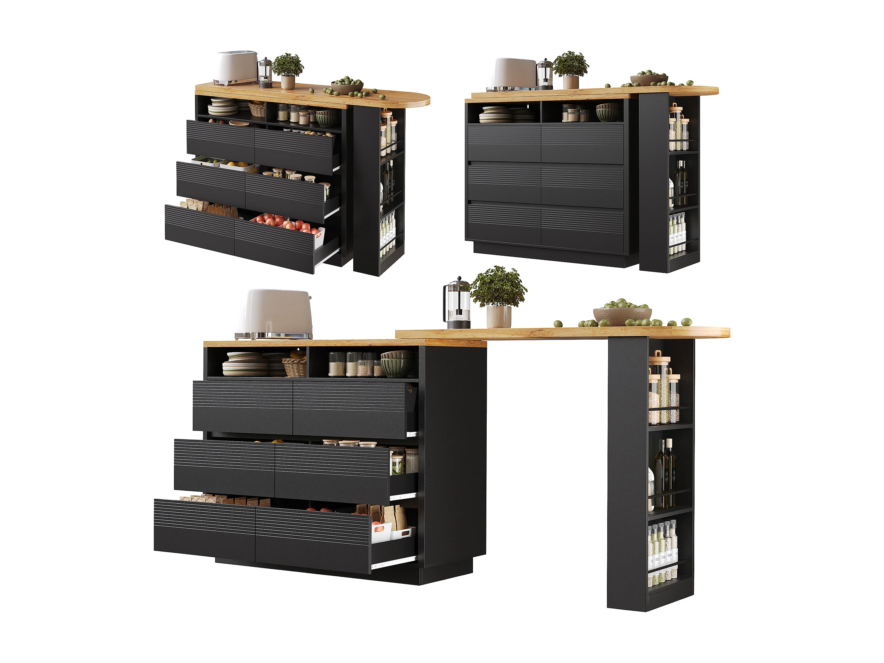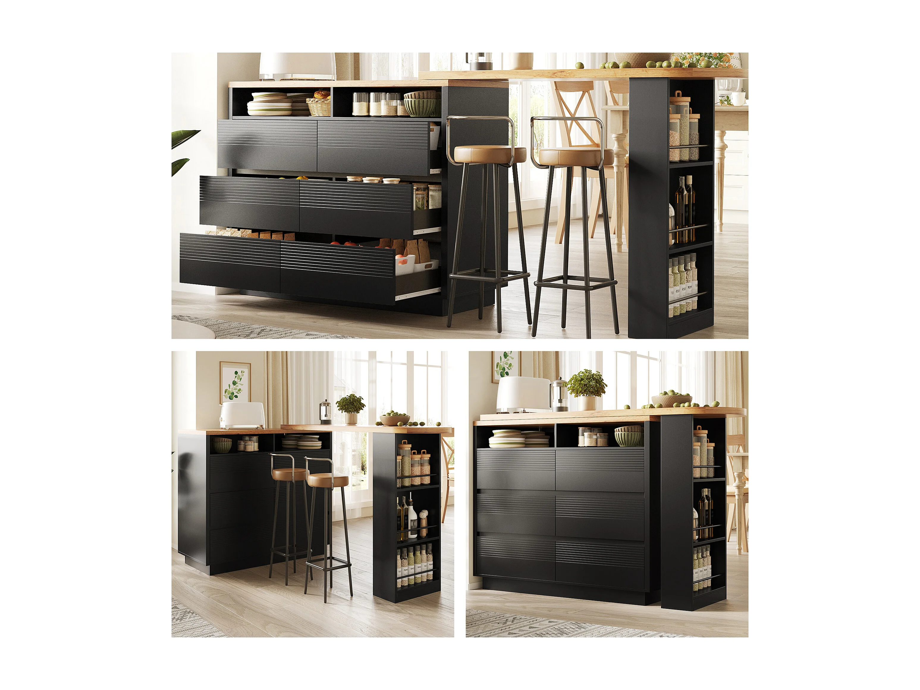 Table de bar mobile extensible - 137-215 x 39 x 102.3 cm - avec 6 tiroir - MDF - noir