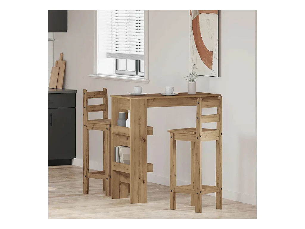 Table de bar avec étagère chêne artisanal bois d'ingénierie