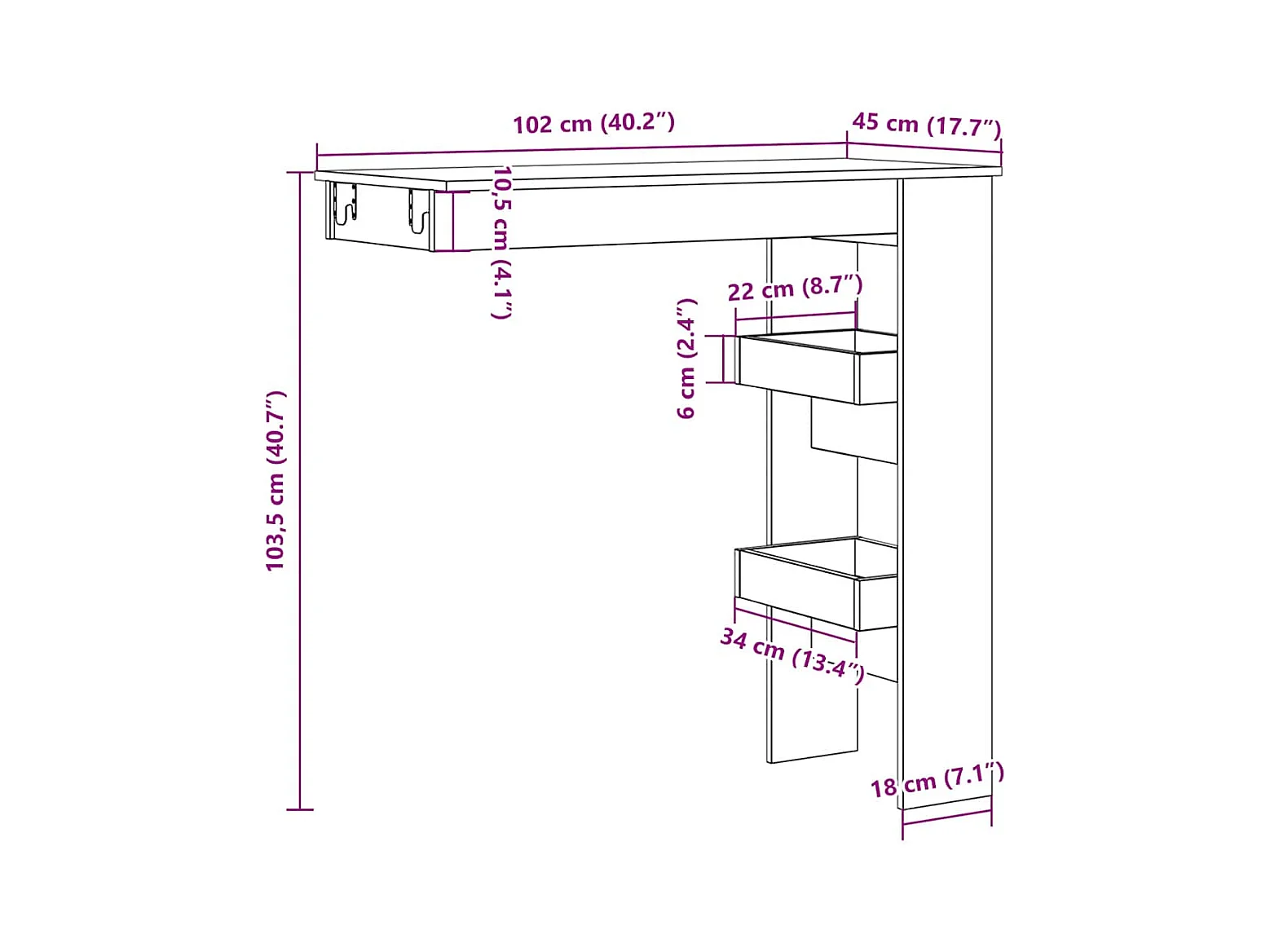 Table bar murale Chêne Sonoma 102x45x103,5 cm Bois d'ingénierie