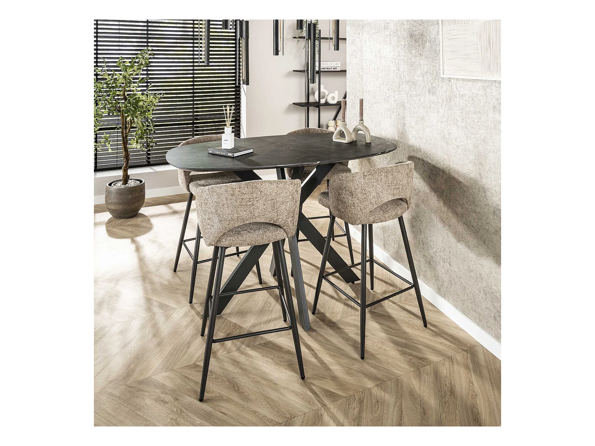 Table de bar ovale danoise à structure croisée - 3D noir marron