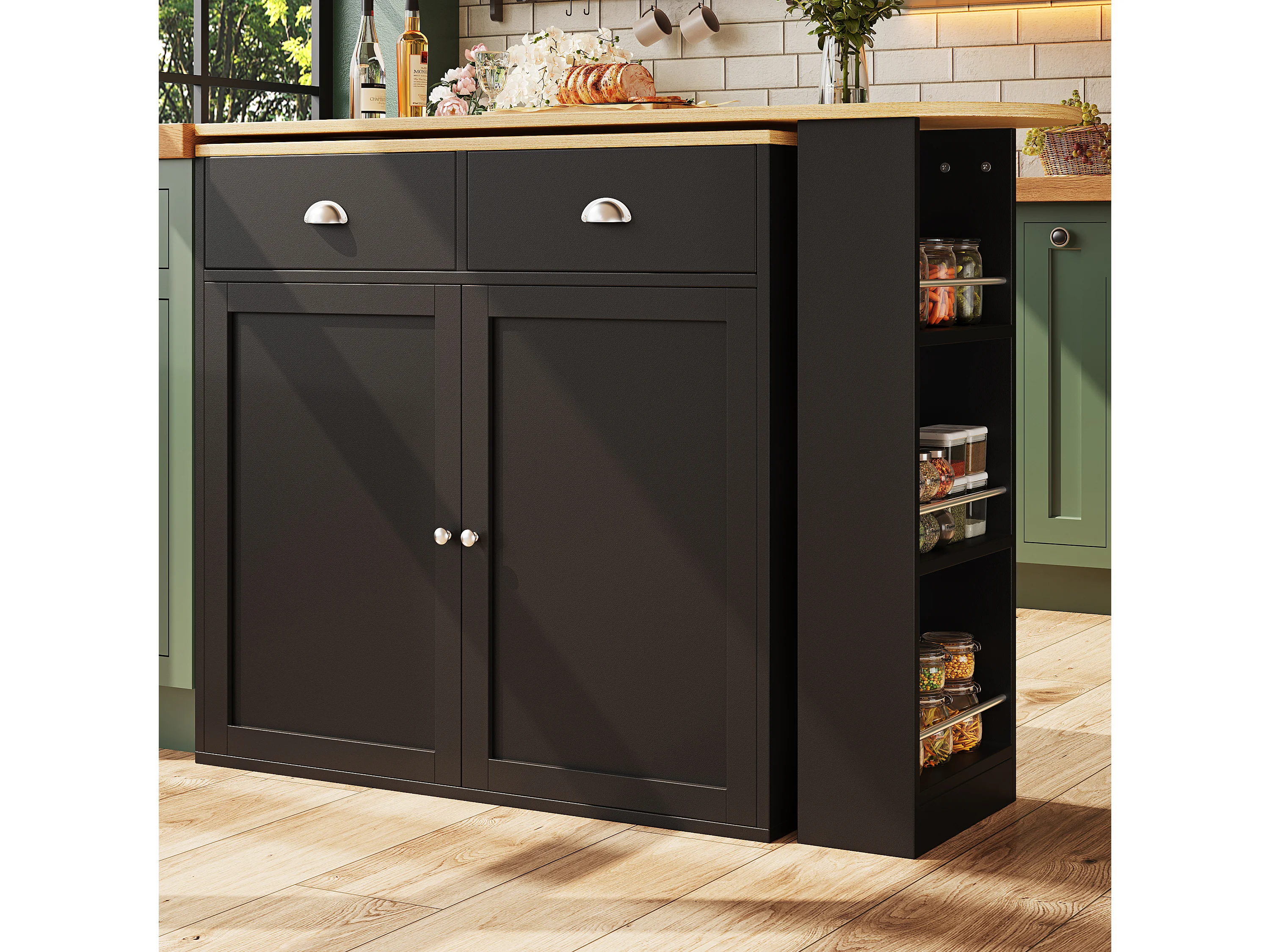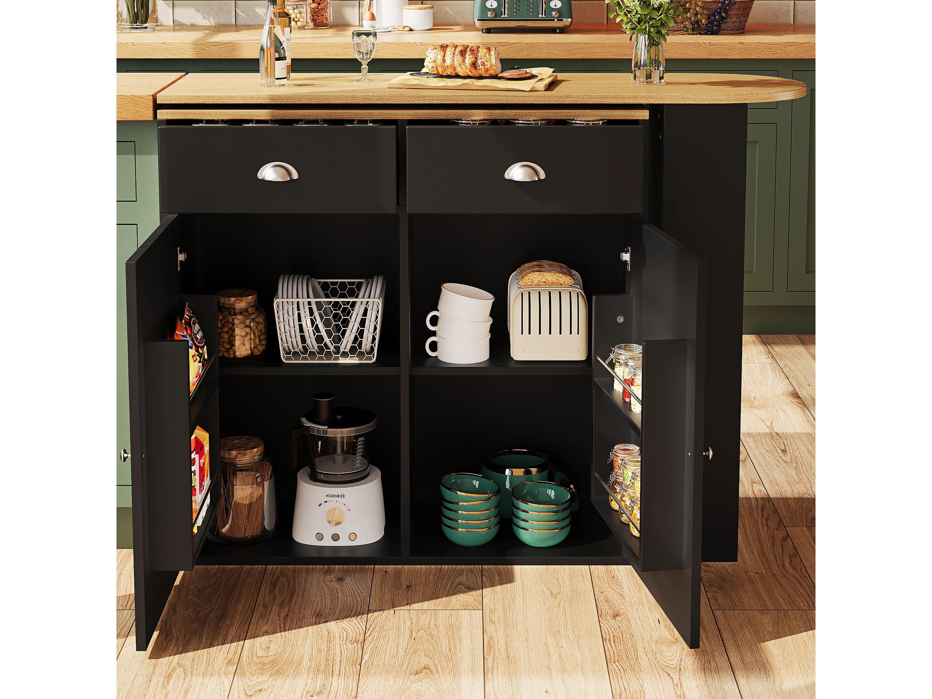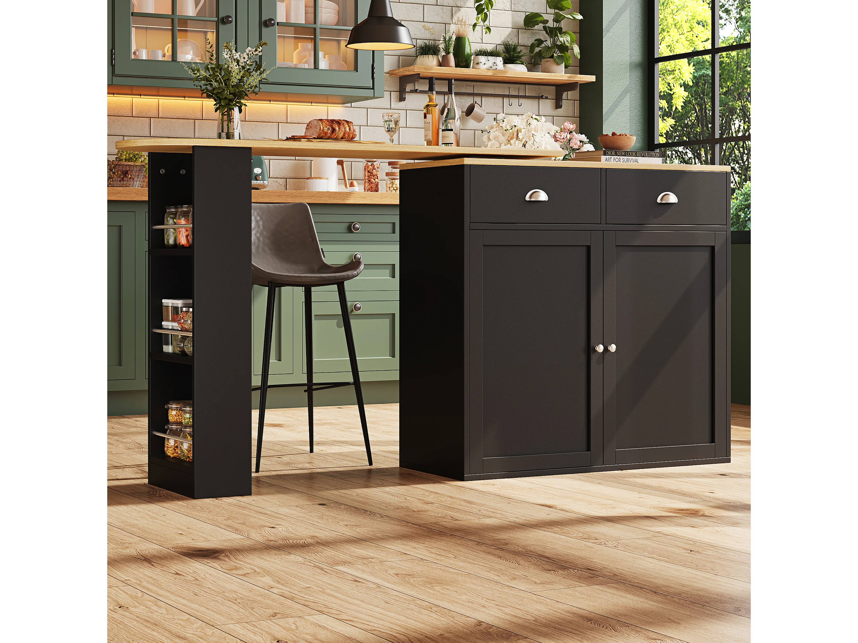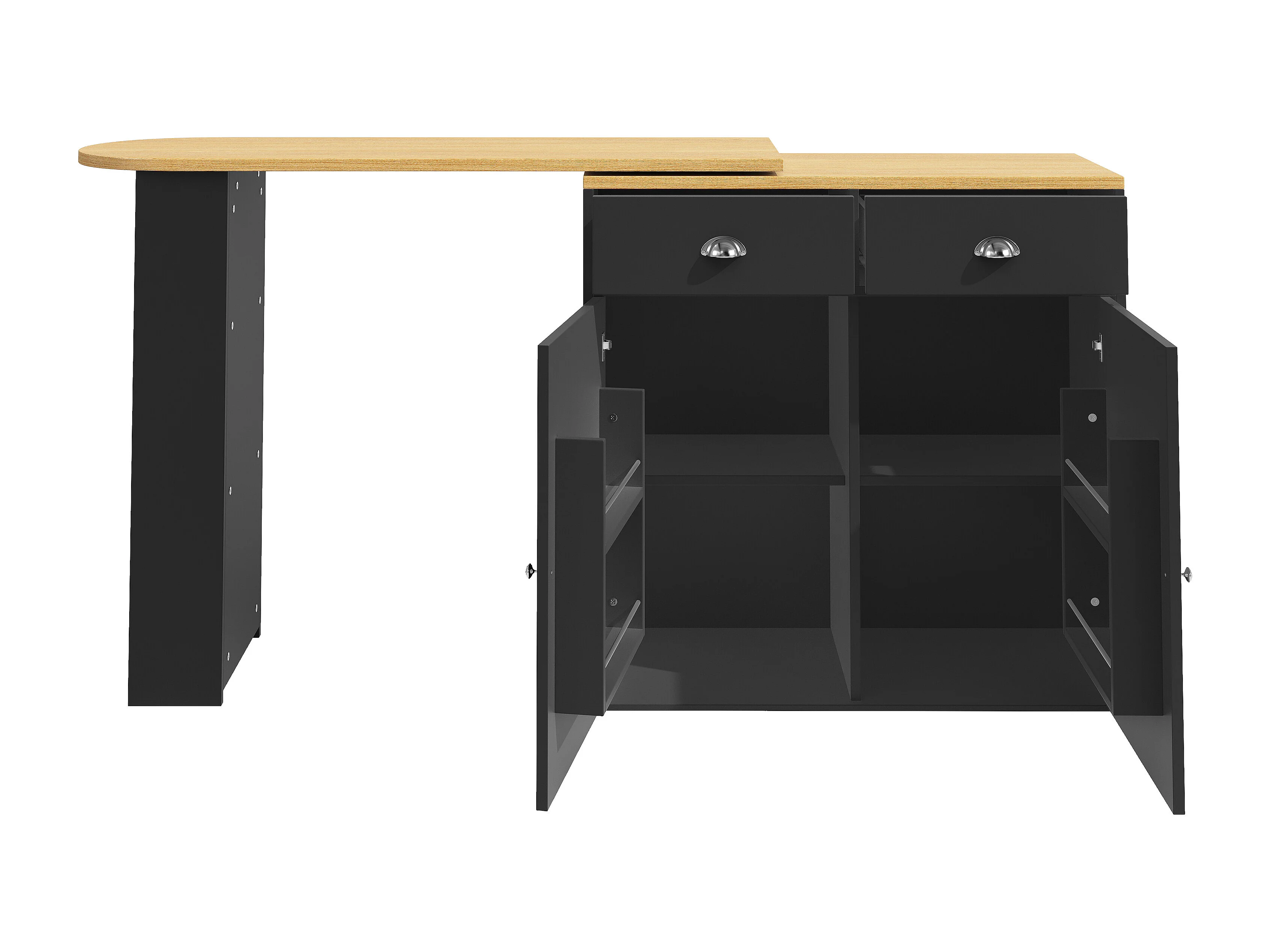 Meuble bar 138x39x105 cm, pivotant 360°, extensible 138-203 cm, rangement multifonction, MDF noir