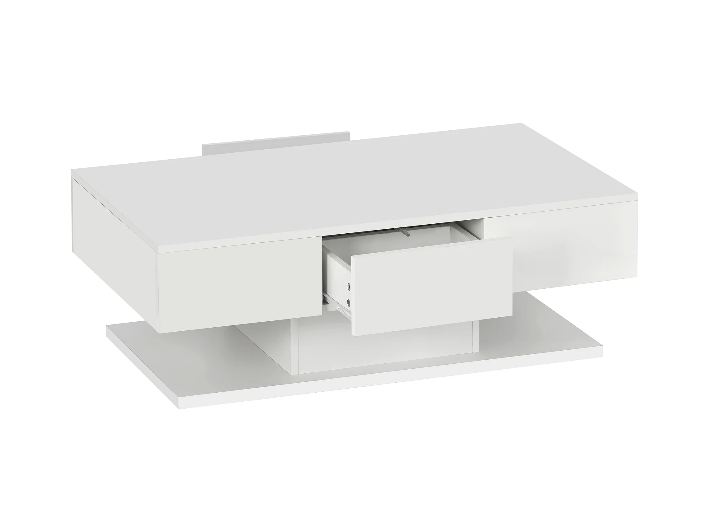 Table de basse rectangulaire avec 2 tiroirs - bois panneaux de particules - style moderne - blanc
