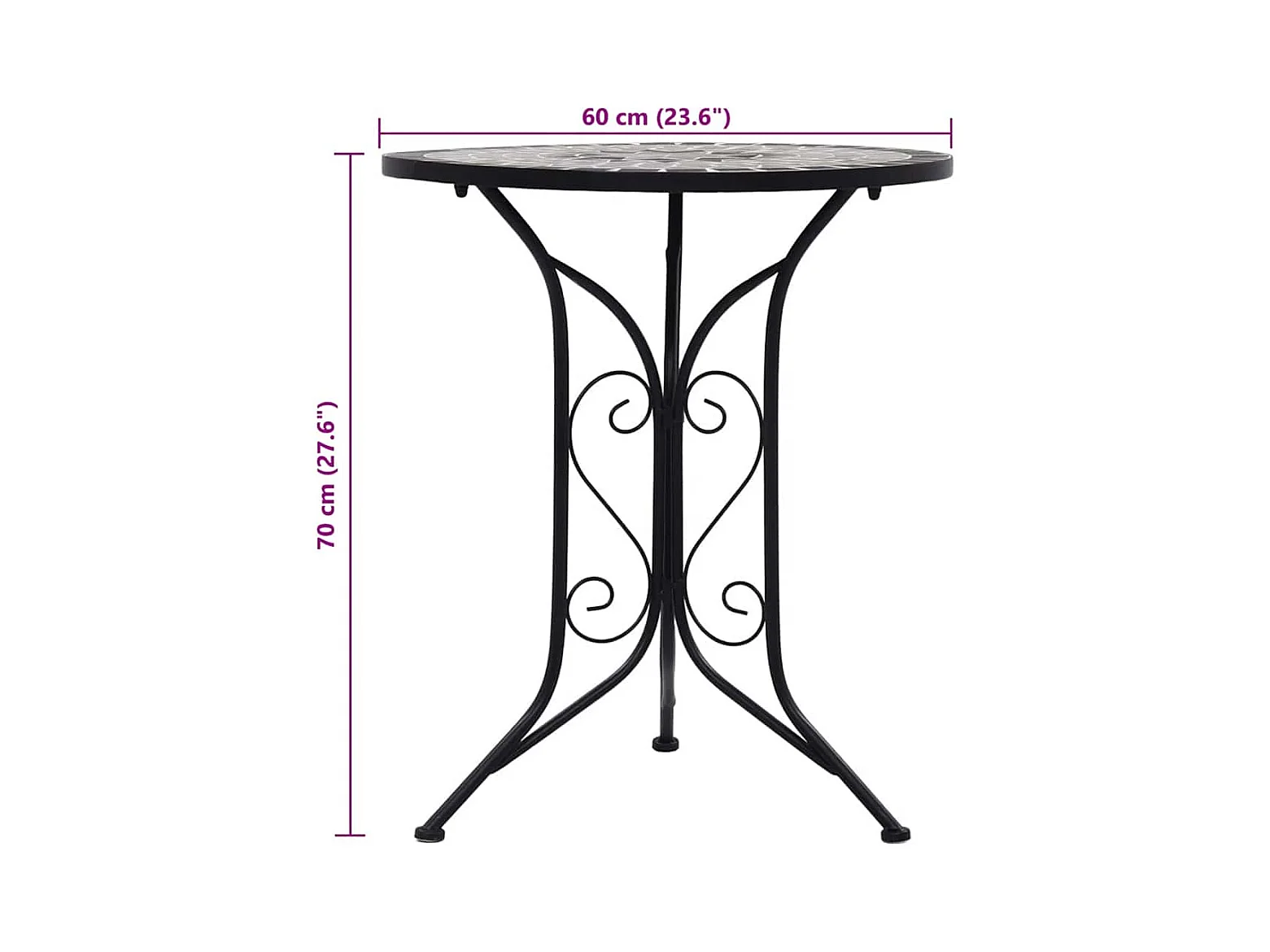 Table de bistro mosaïque Gris 60 cm Céramique
