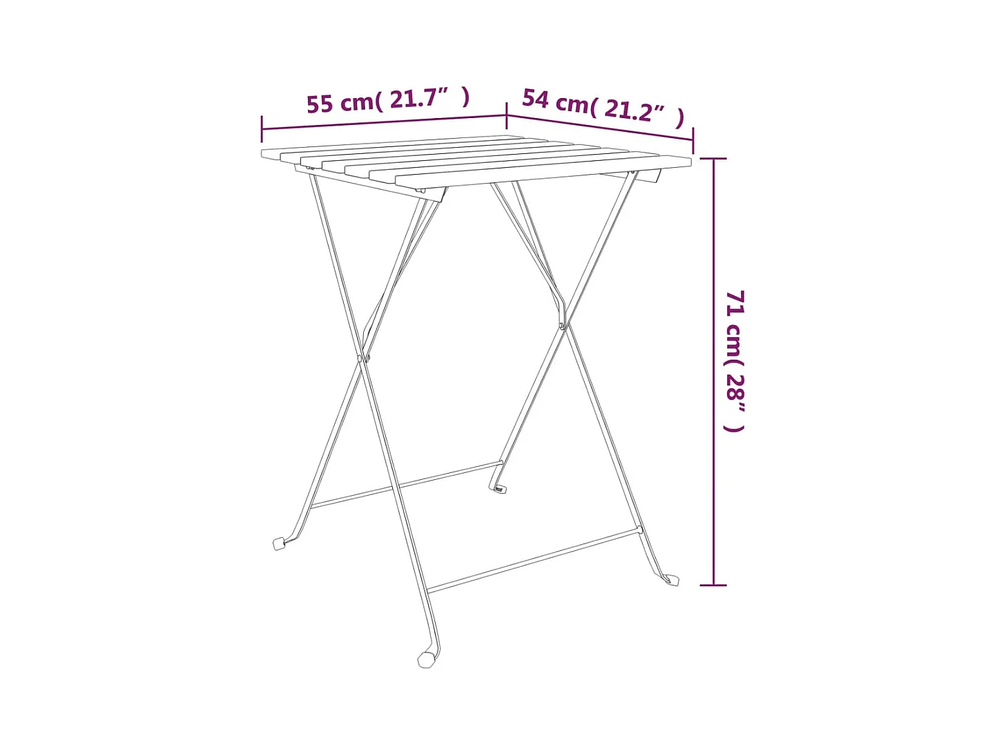 Table de bistro pliante 55x54x71cm Bois acacia solide et acier