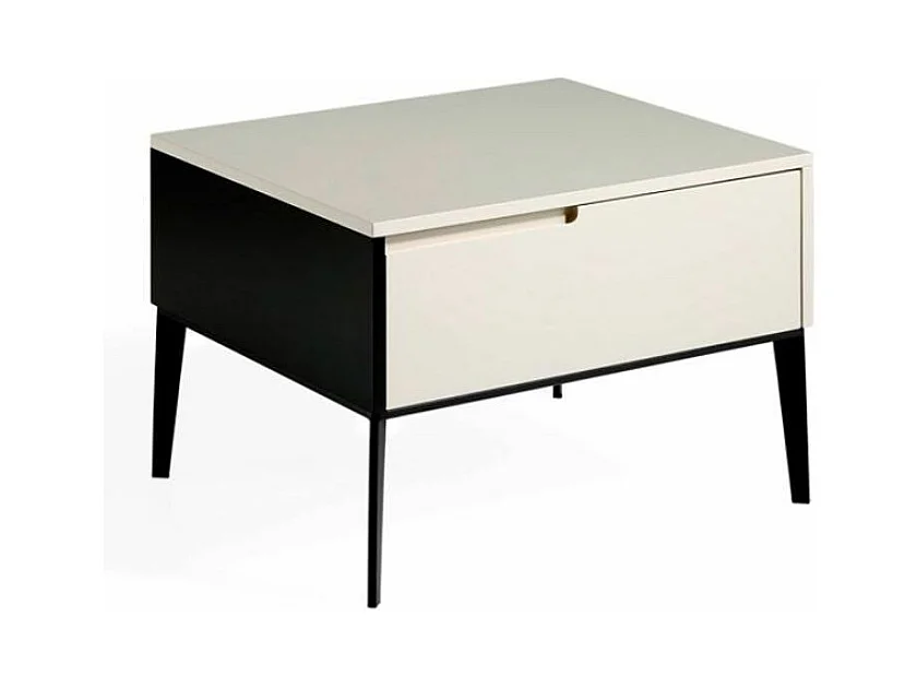 Table de chevet 1 tiroir bois laqué et acier noir Maby-Couleur Quartz