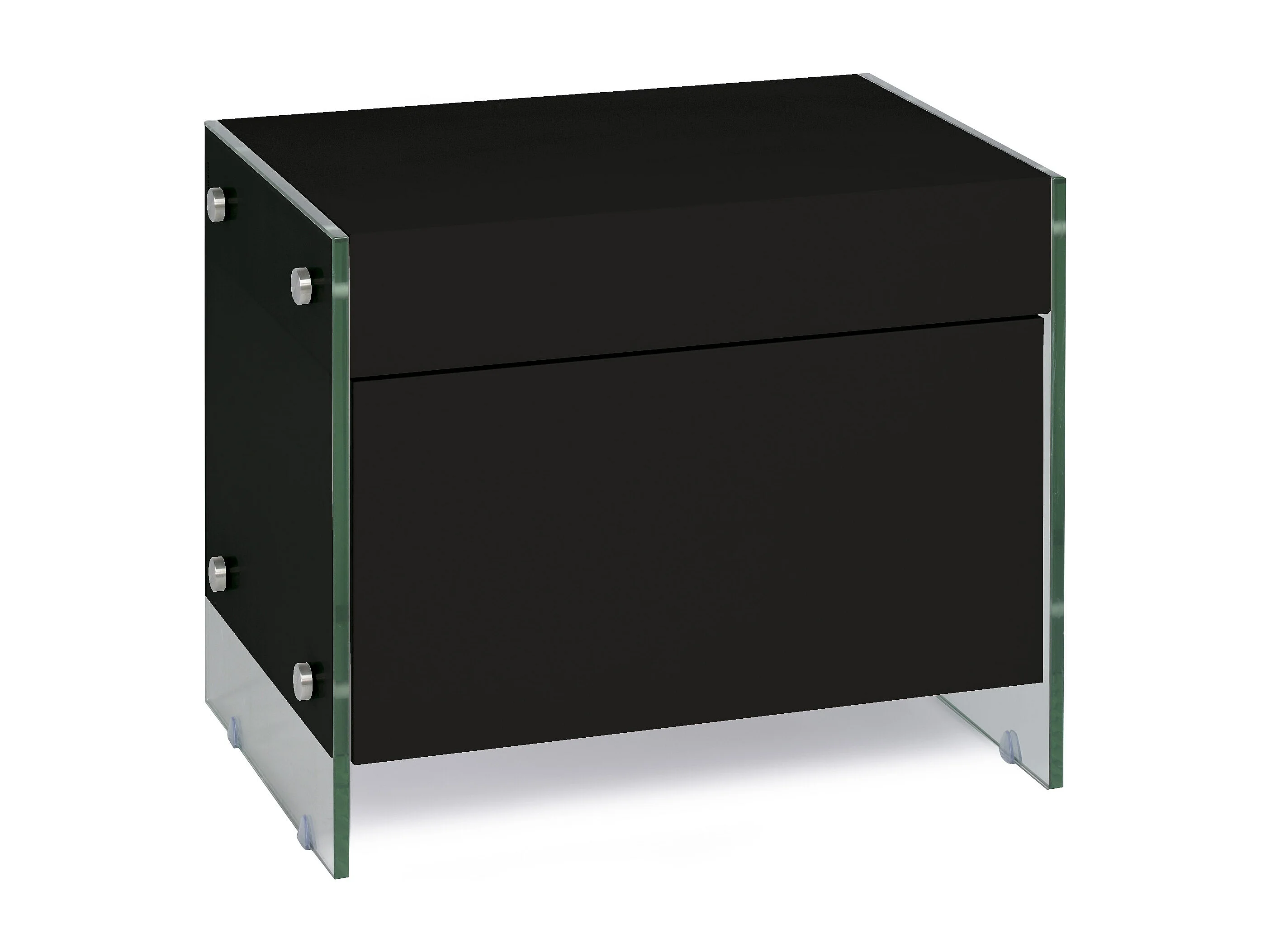 Table de chevet 1 tiroir bois laqué noir et verre trempé Elly