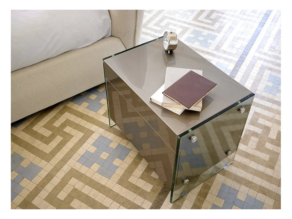 Table de chevet 1 tiroir bois laqué taupe et verre trempé Elly