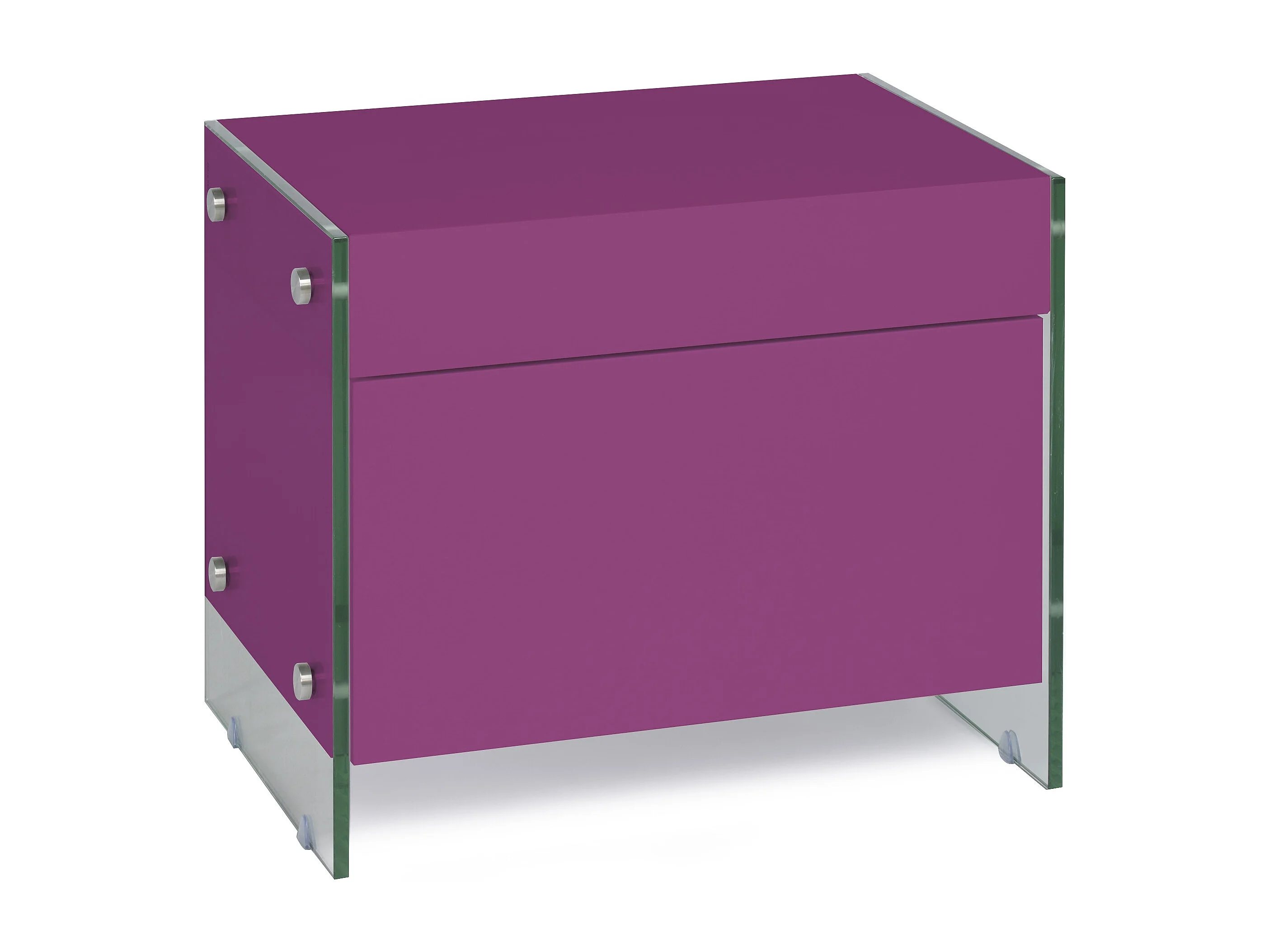 Table de chevet 1 tiroir bois laqué violet et verre trempé Elly