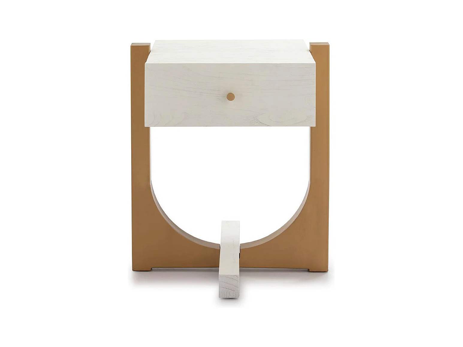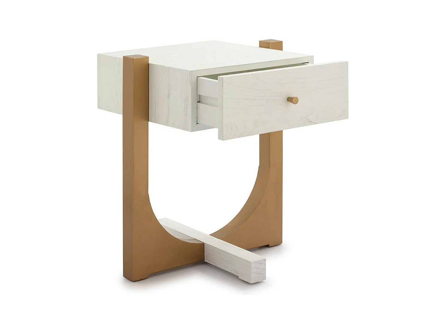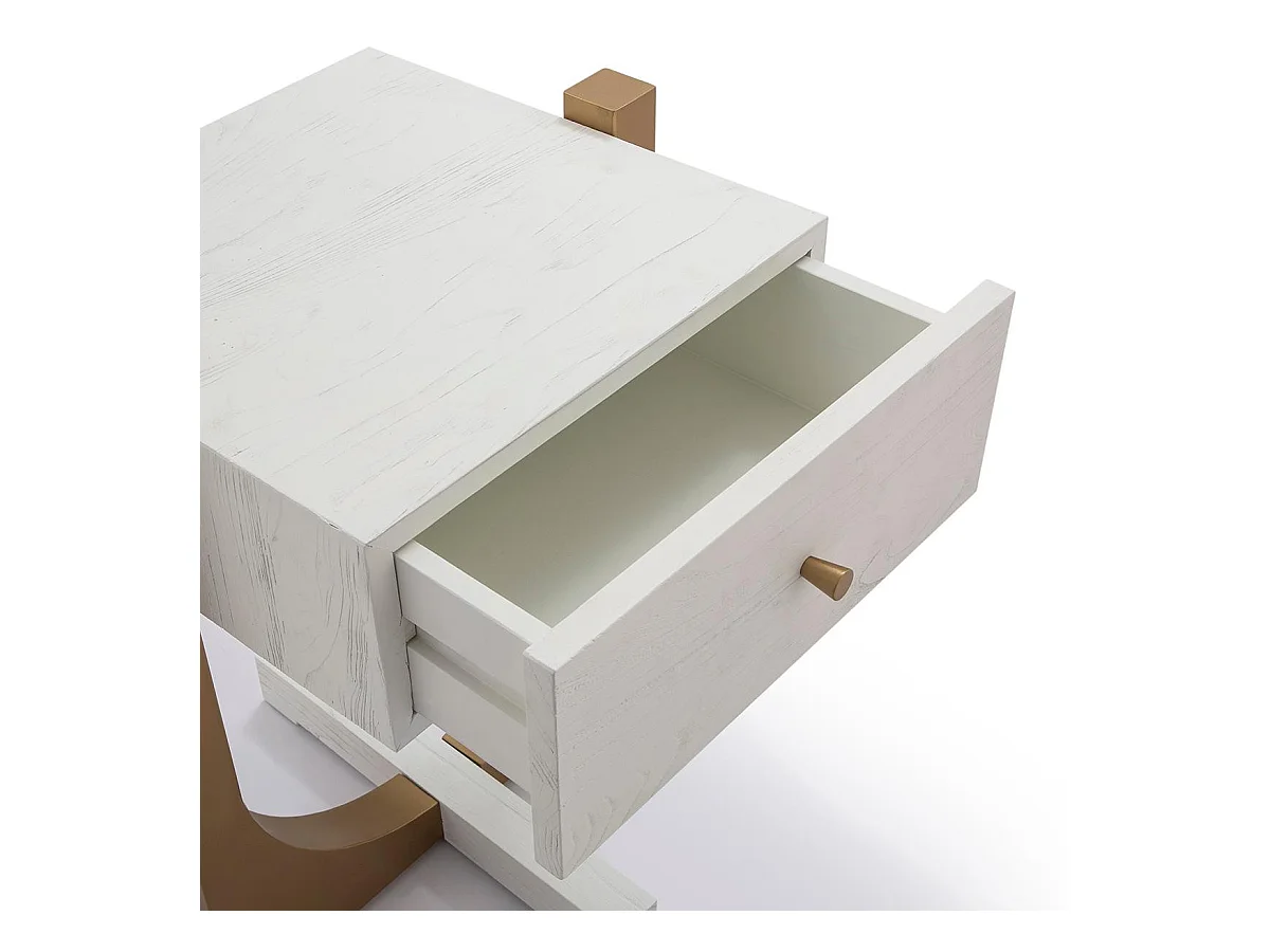 Table de chevet 1 tiroir bois massif blanc et pied métal doré Klass