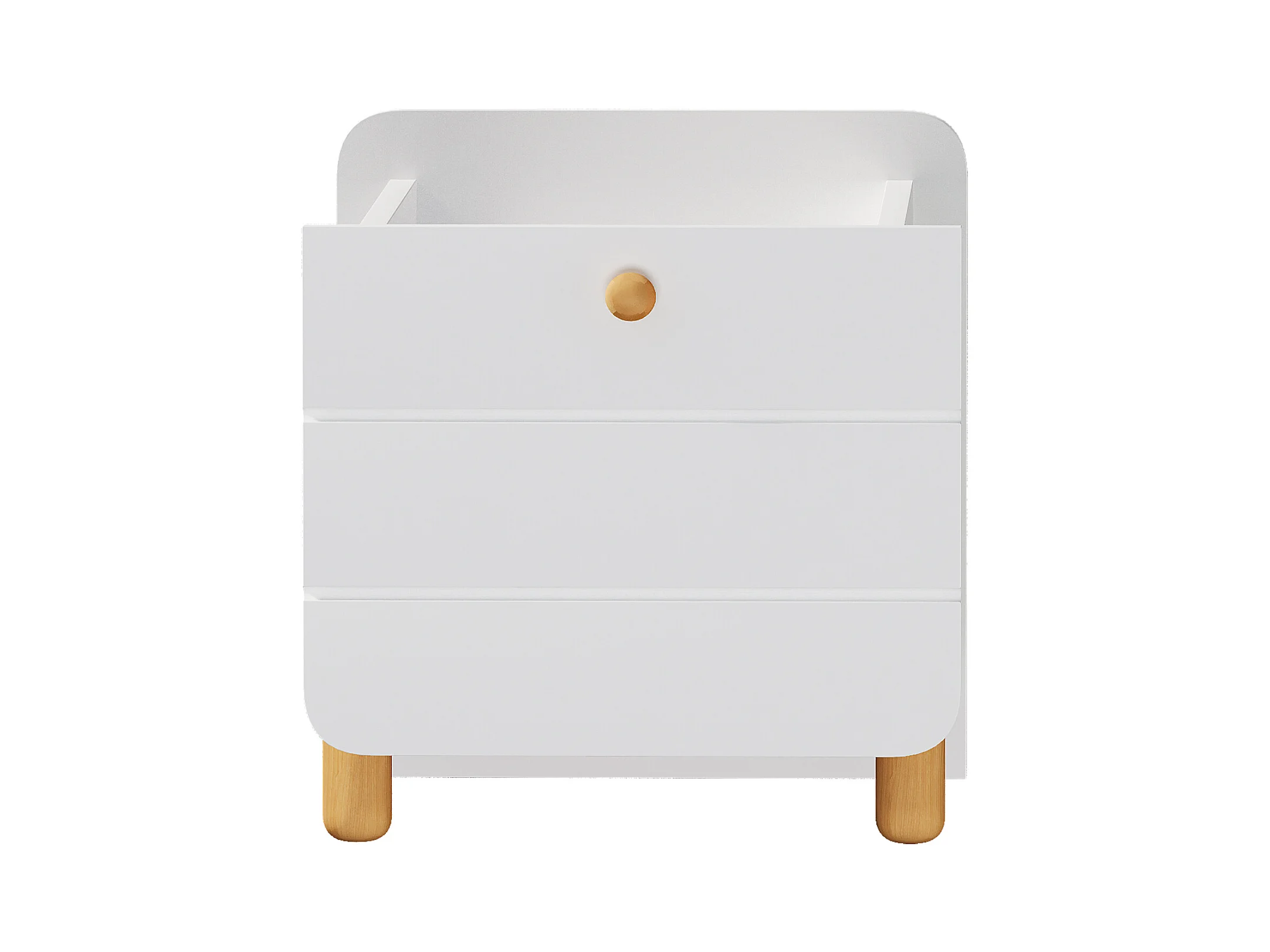 Table de chevet 1 tiroir, coulisses silencieuses, pieds couleur bois, rangements, MDF, blanc (38,5x33x39,5cm)