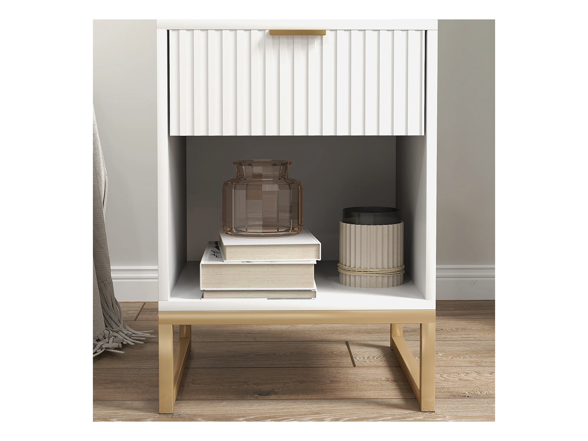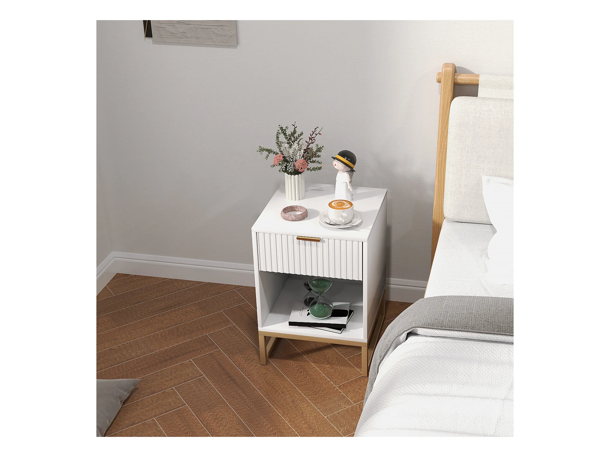 Table de chevet à 1 tiroir - Table de chevet avec rangement ouvert - blanc - pour chambre