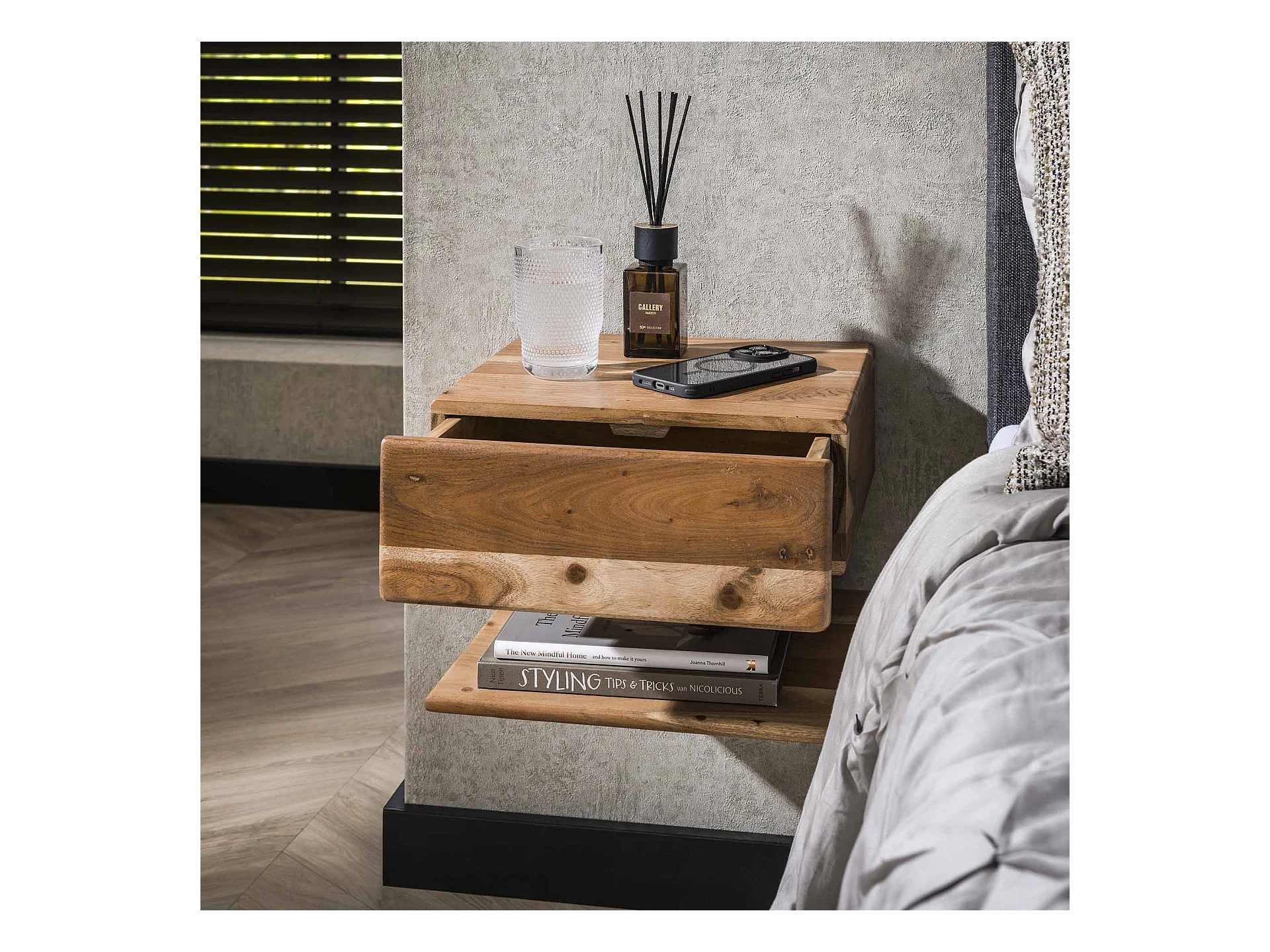 Table de chevet 1L Étagère - Acacia massif Naturel