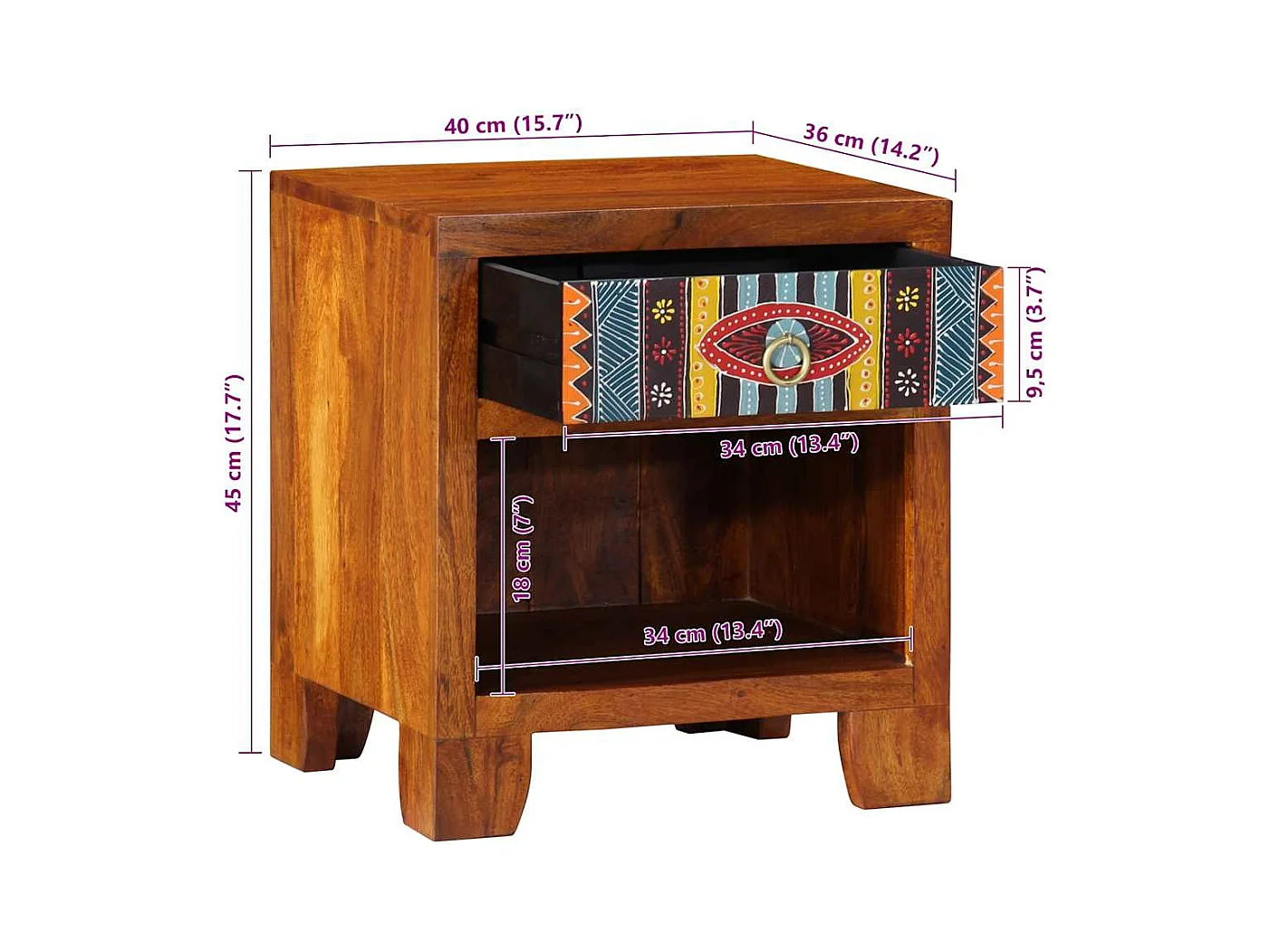 Table de chevet marron 40x33x46 cm bois de manguier solide