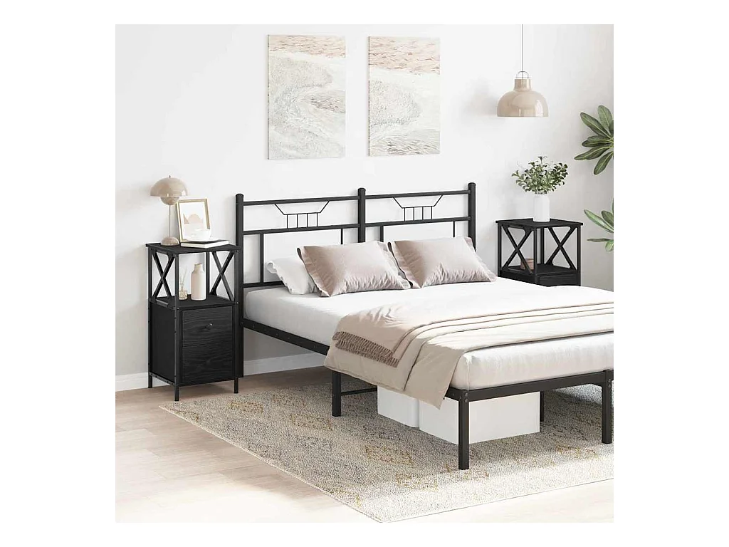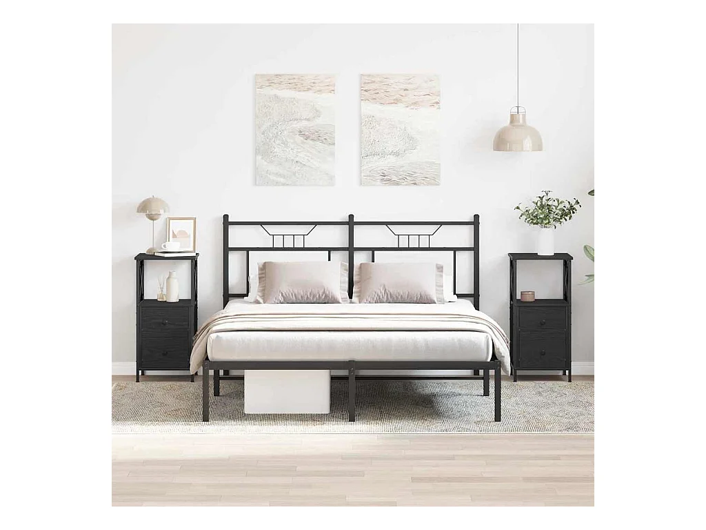 Commode de chevet Noir Chêne 34x36x50 cm Bois d'ingénierie et Acier