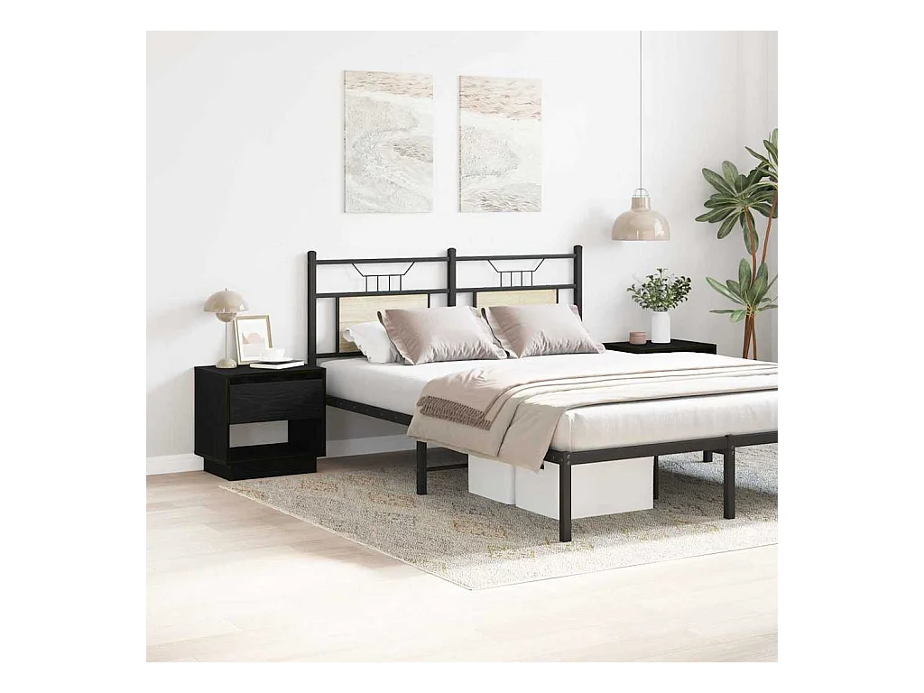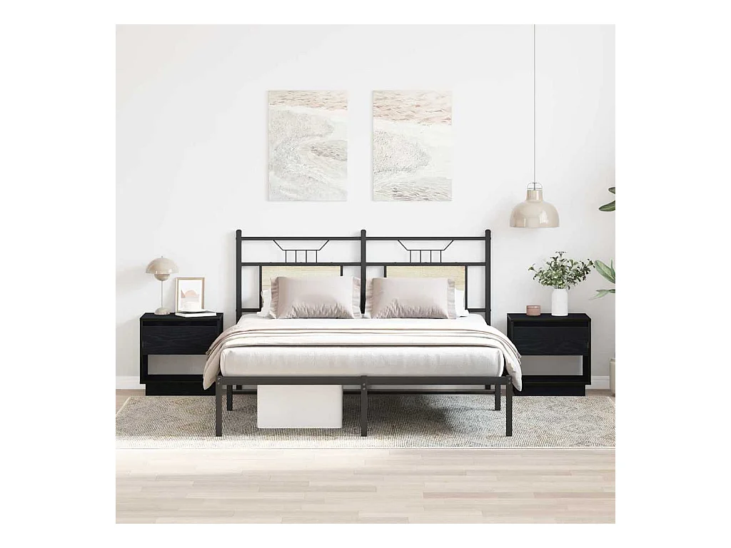 Tables de chevet 2 pcs Noir 40x34x45 cm Bois de pin massif