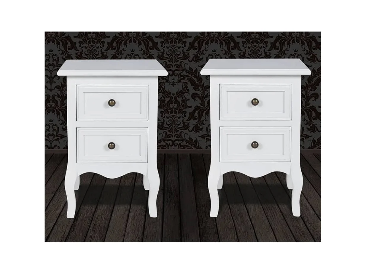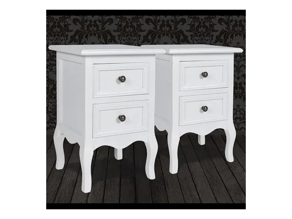 Table de chevet 2 pièces avec 2 tiroirs MDF Blanc