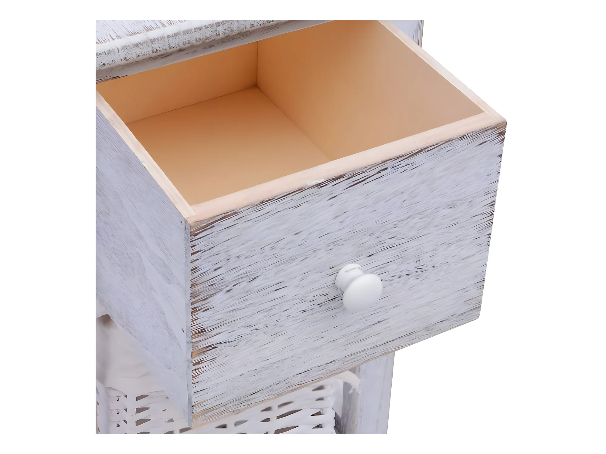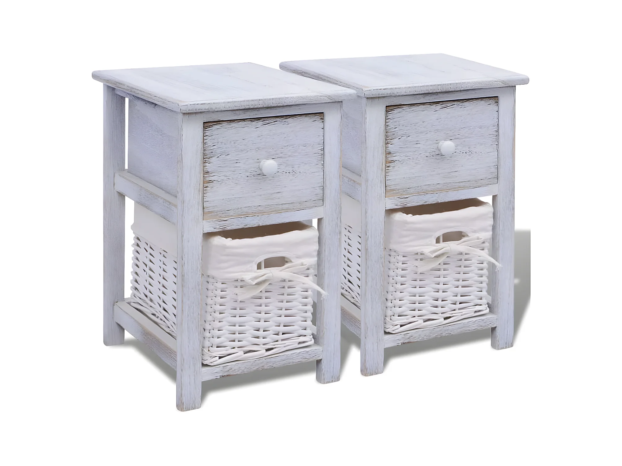Lot 2 Tables de Chevet avec 1 Tiroir et 2 Panier d'Osier Amovible,Cadre en Bois de Paulownia Style Vintage Rustique