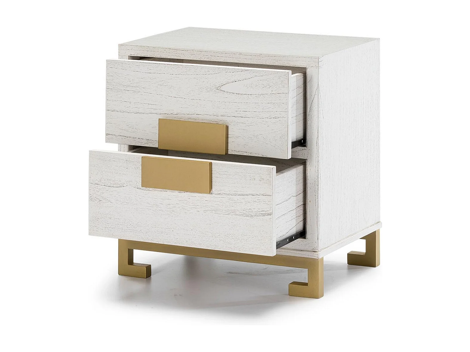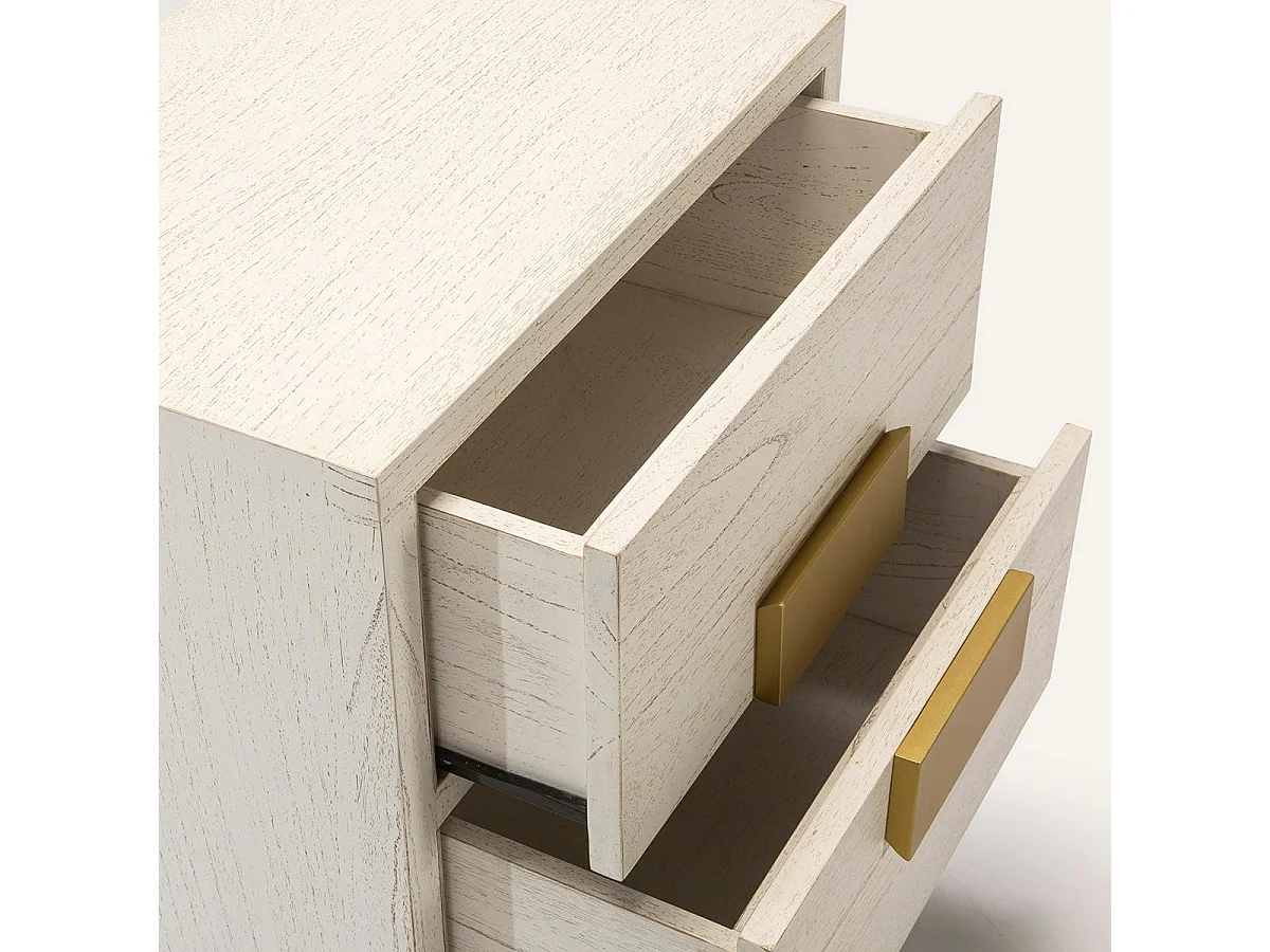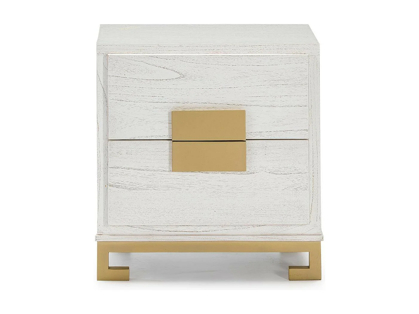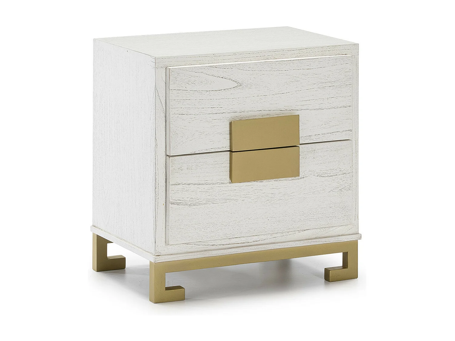 Table de chevet 2 tiroirs bois blanc et doré Hope