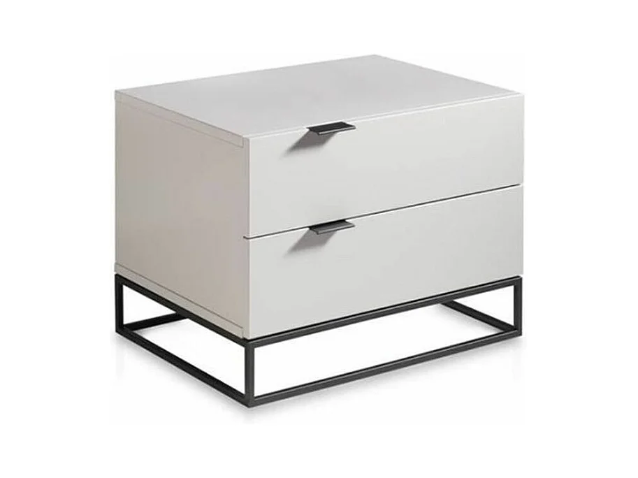 Table de chevet 2 tiroirs bois laqué et acier noir Ciora-Couleur Blanc