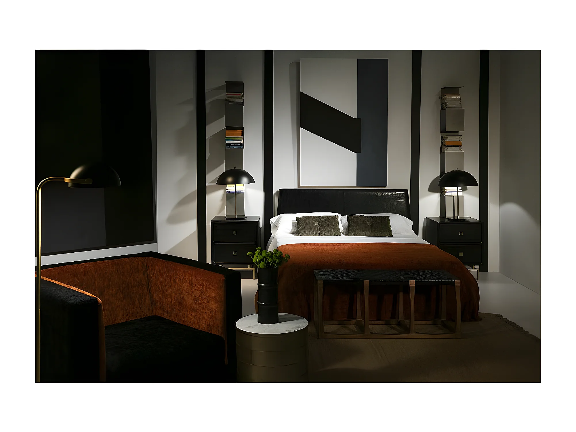 Chevet design 2 tiroirs bois noir laqué et métal doré Diamanto 50cm