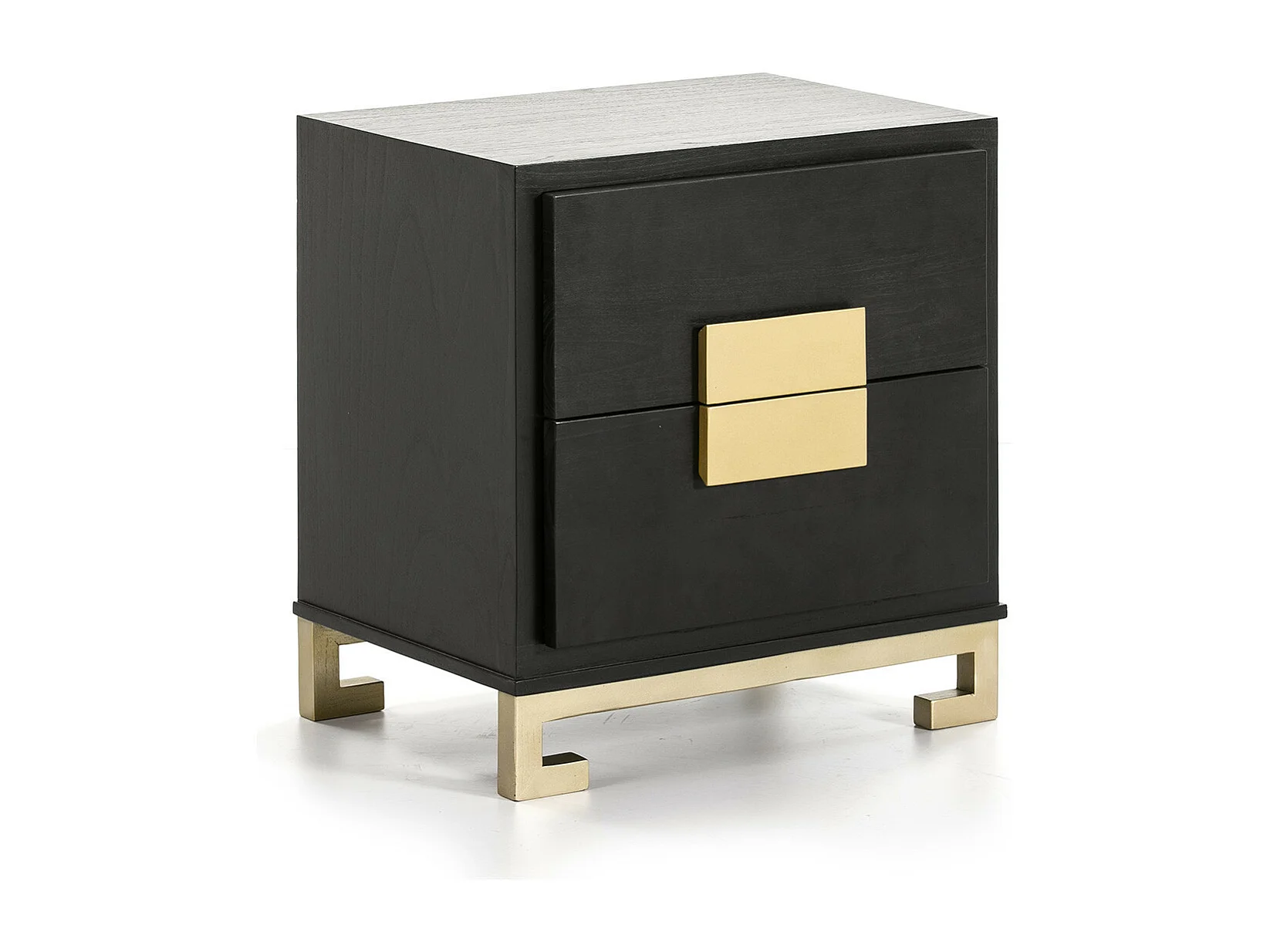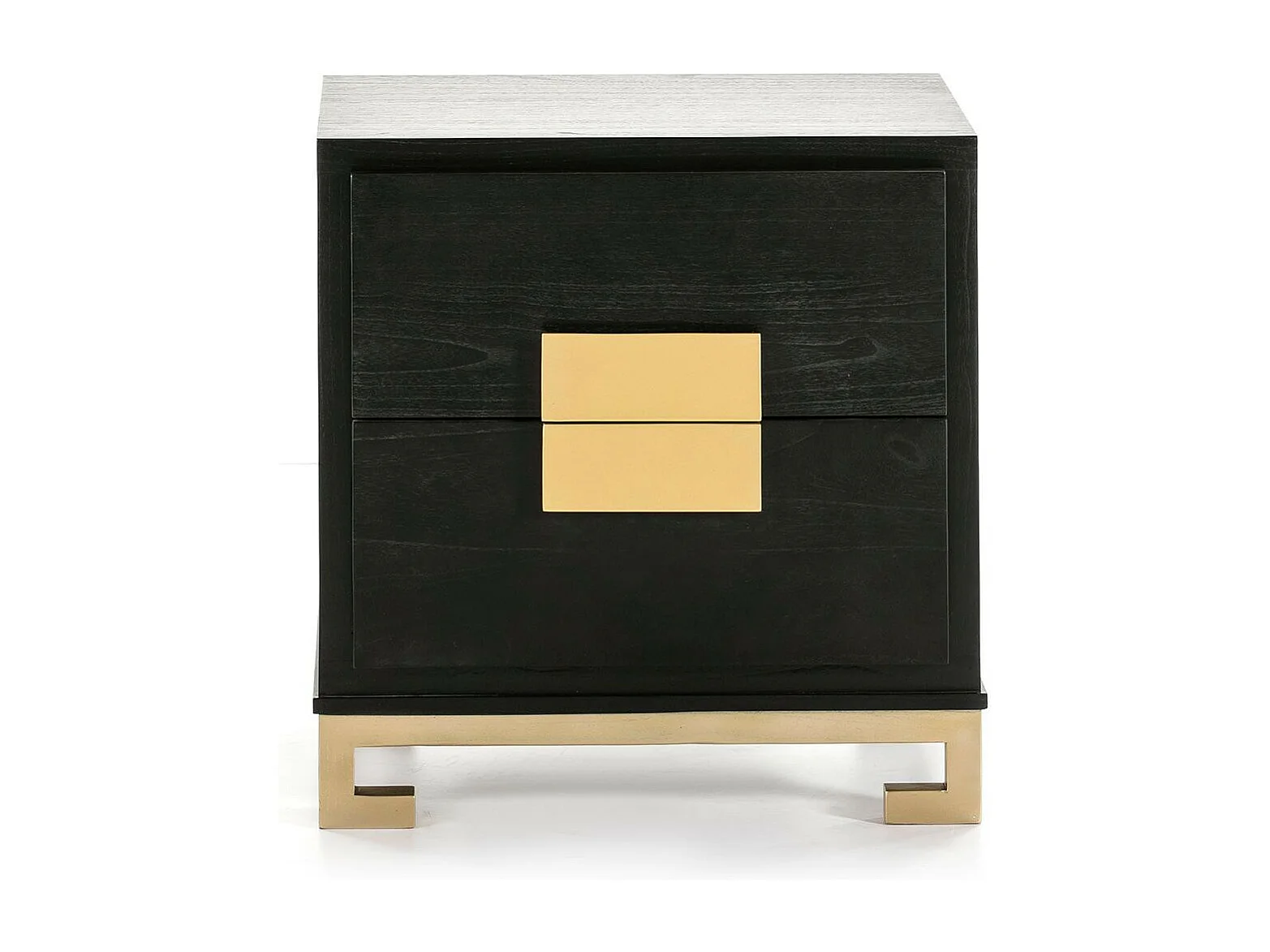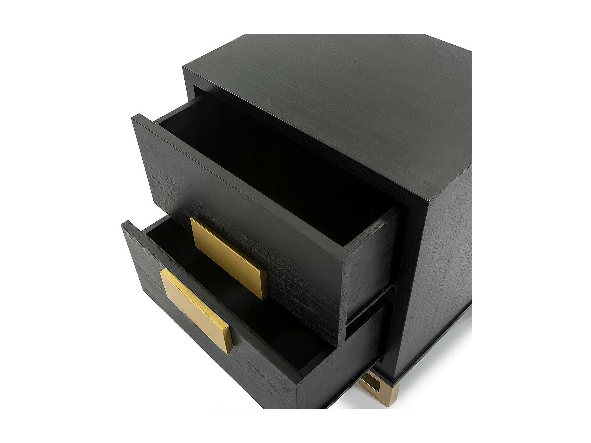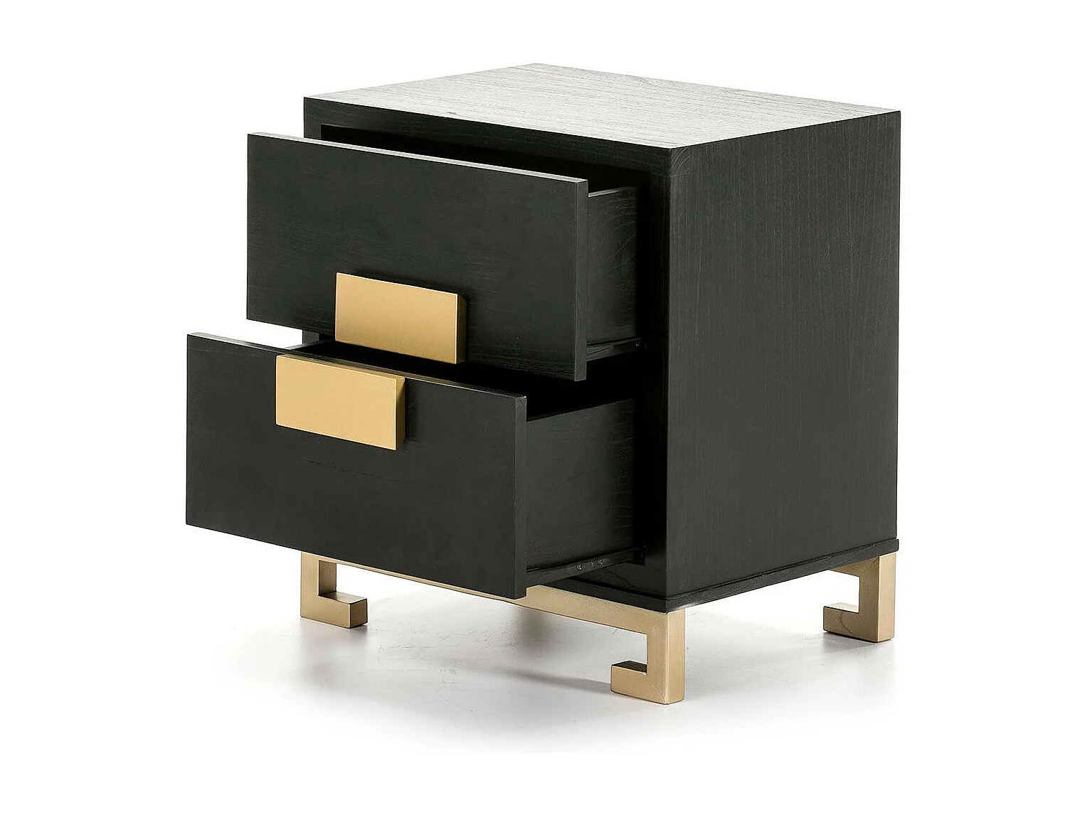 Table de chevet 2 tiroirs bois noir et doré Hope