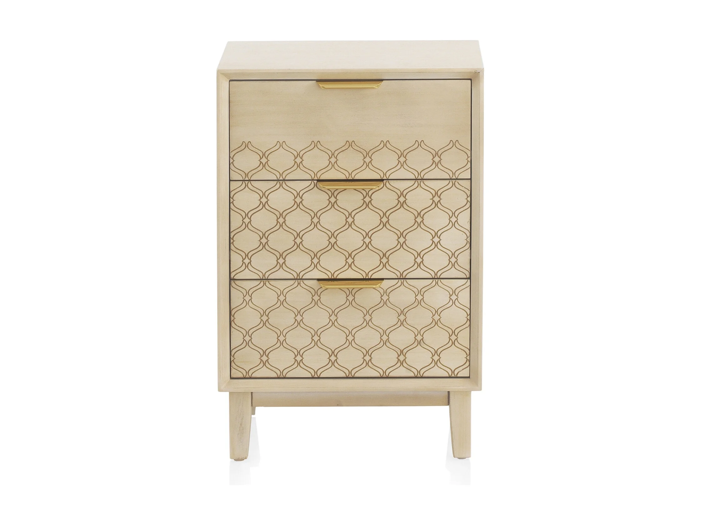 Table de chevet 3 tiroirs plaquée chêne et couleur beige
