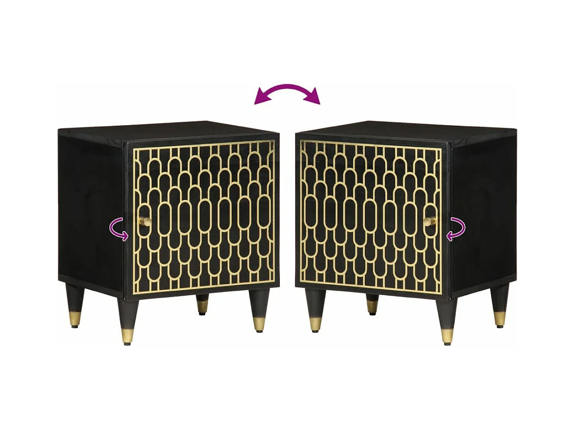 Tables de chevet 2 pièces noir 40x33x46 cm bois de manguier solide