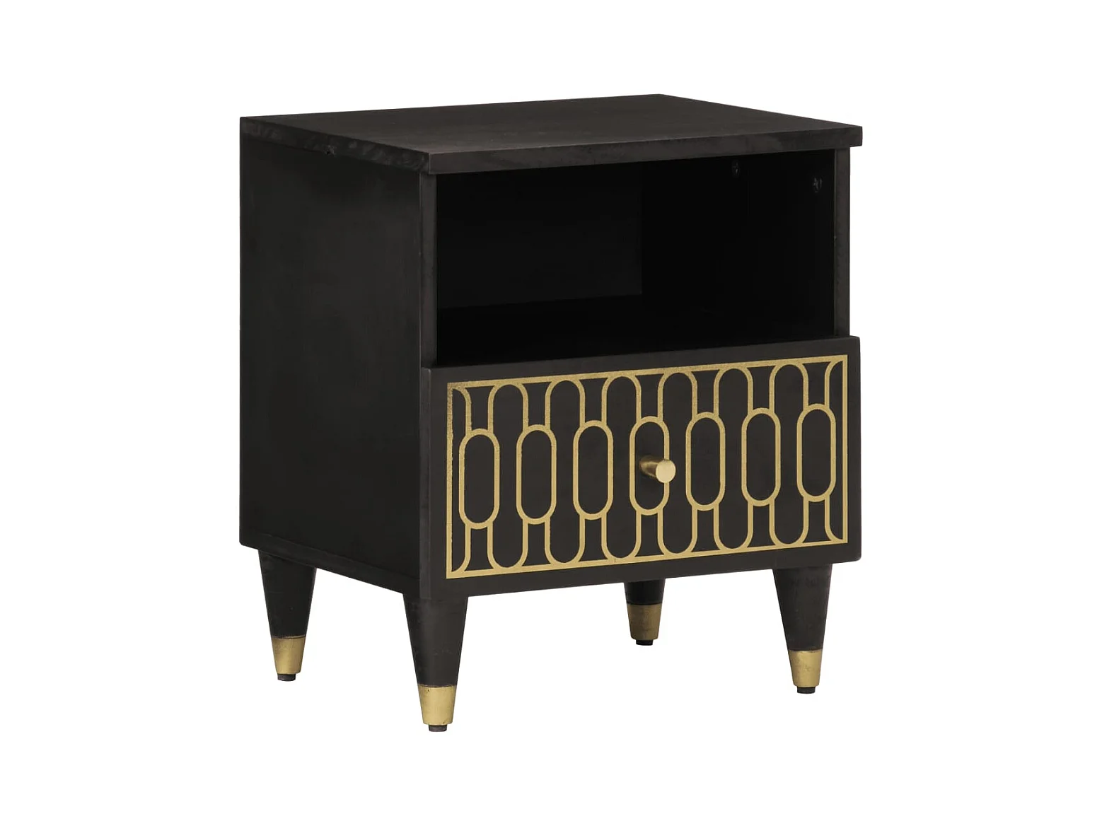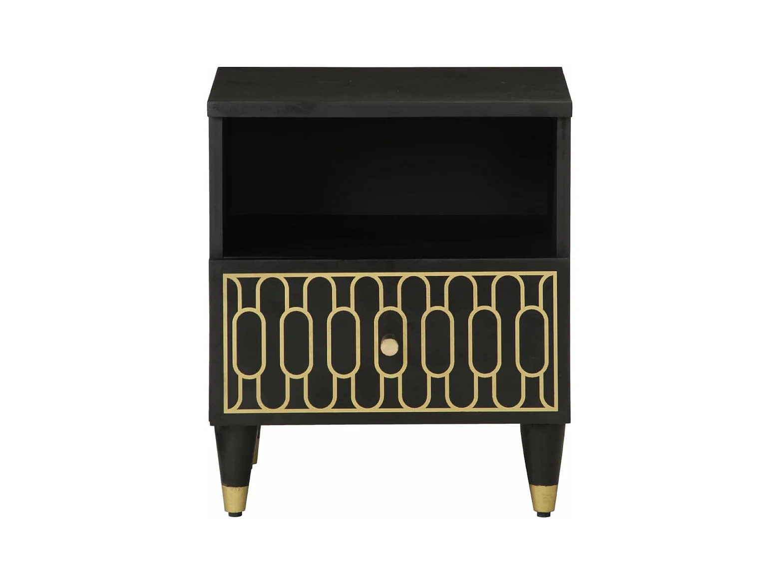 Table de chevet noir 40x33x46 cm bois de manguier solide