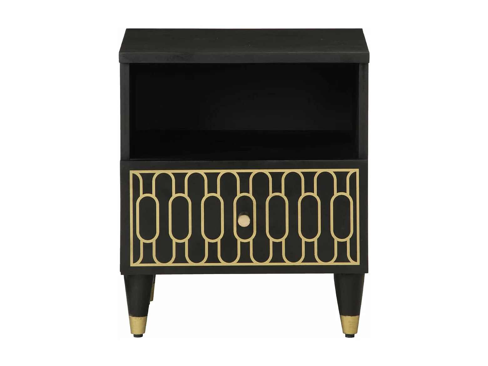 Table de chevet noir 40x33x46 cm bois de manguier solide