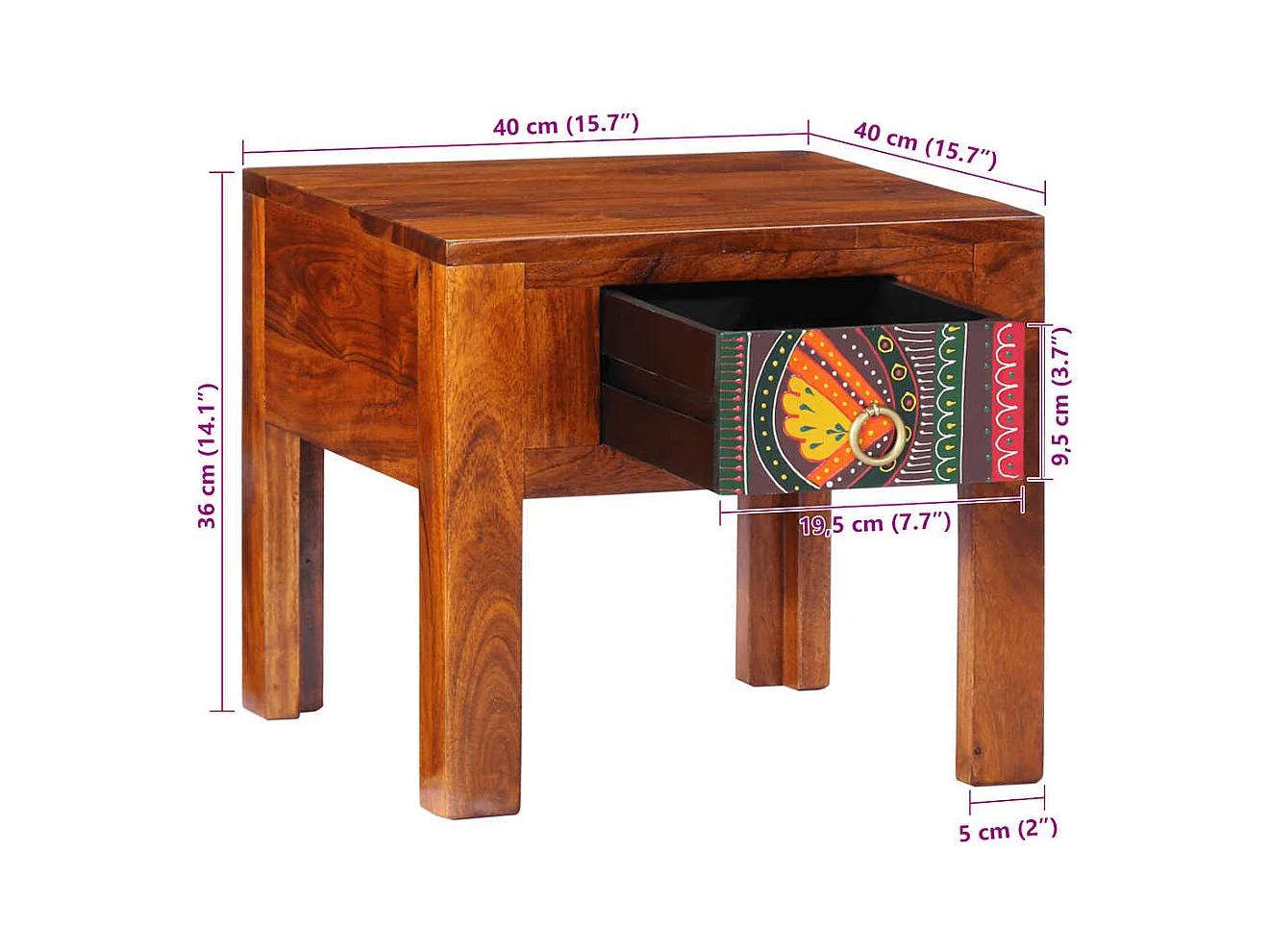 Table de chevet 40x40x36 cm bois d'acacia massif