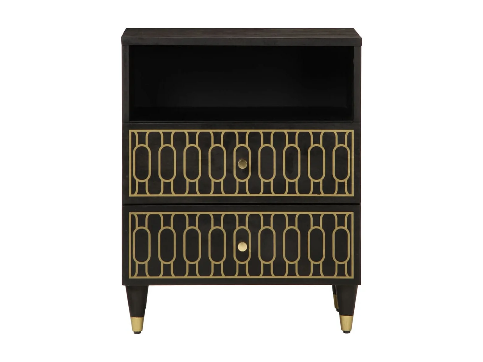 Table de chevet noir 40x33x46 cm bois de manguier solide