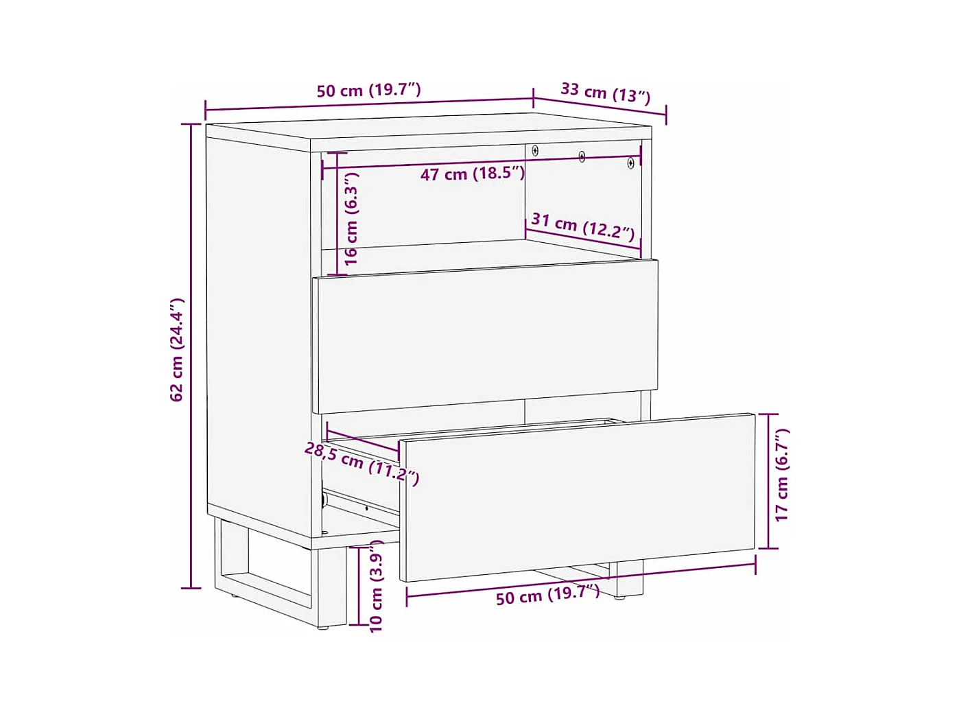 Table de chevet 50x33x60 cm en bois solide de mangue