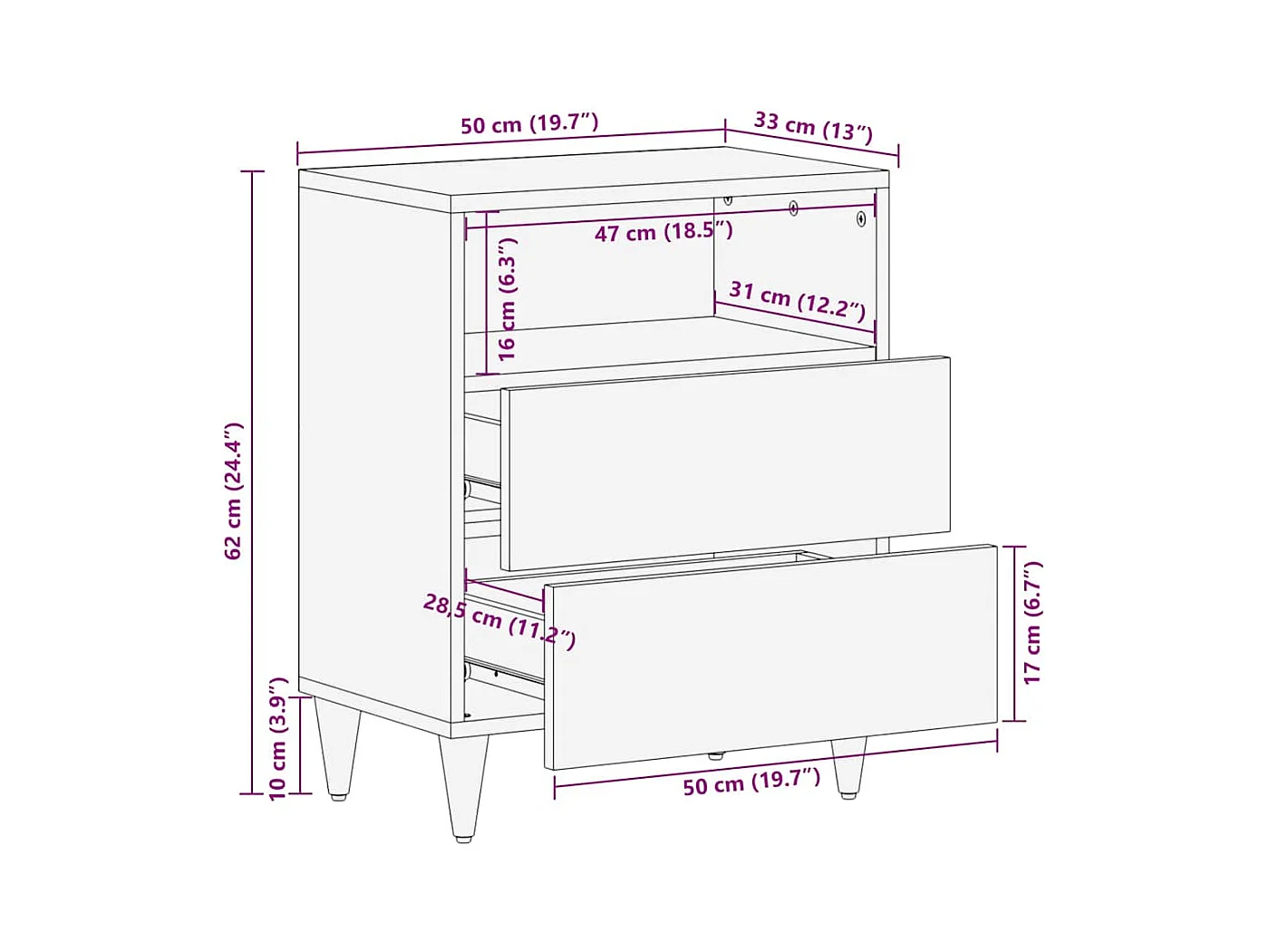 Table de chevet 50x33x60 cm en bois solide de mangue