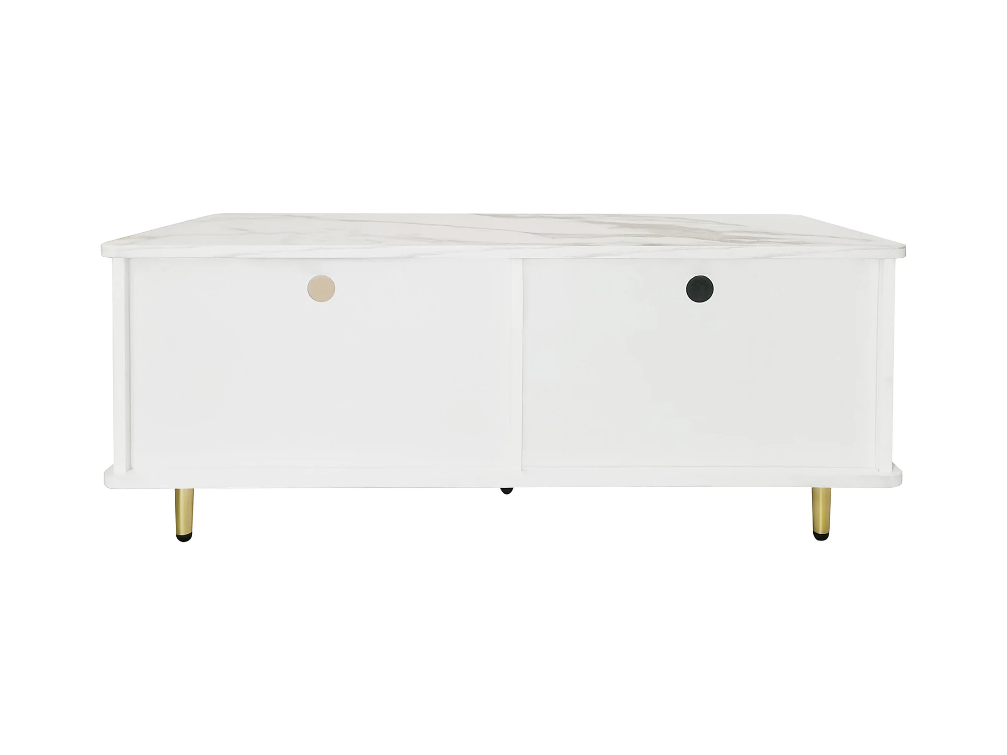 Table de chevet à 1 tiroir - Table de chevet avec étagères ouvertes et poignées dorées - bois