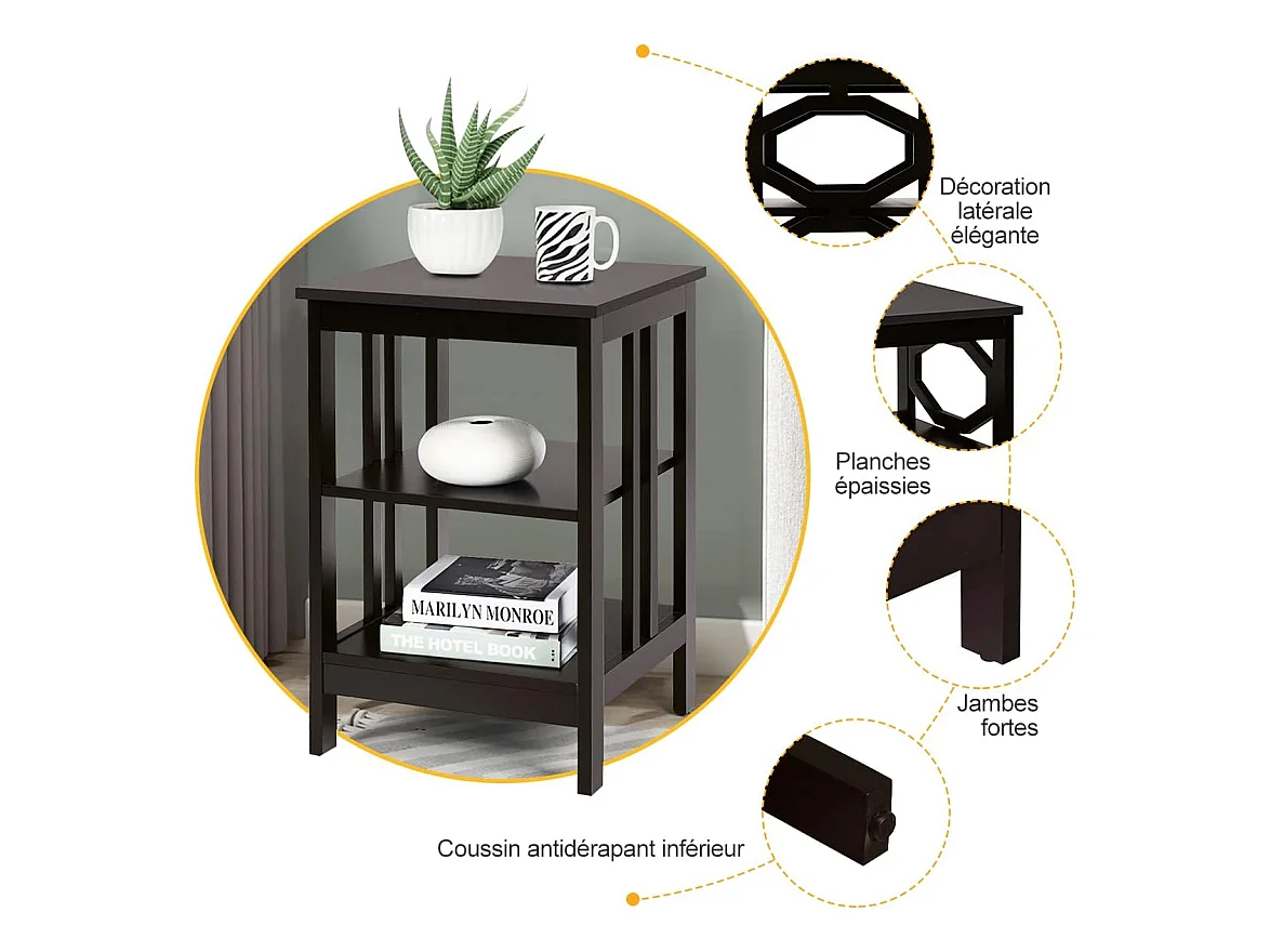 Table de Chevet à 3 Niveaux, Table d'Appoint Chevet, Table Basse Simple et Contemporain, pour Chambre, Salon 40x40x61cm, Brun