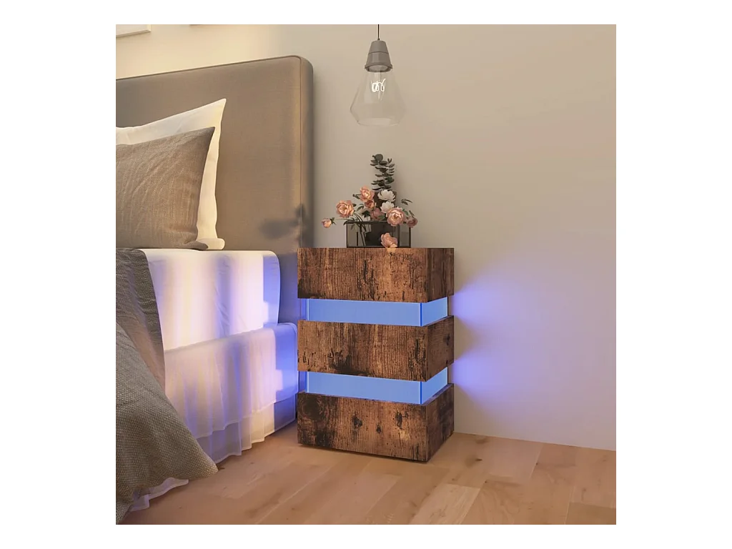 Table de chevet à LED chêne fumé 45x35x67 cm bois d'ingénierie