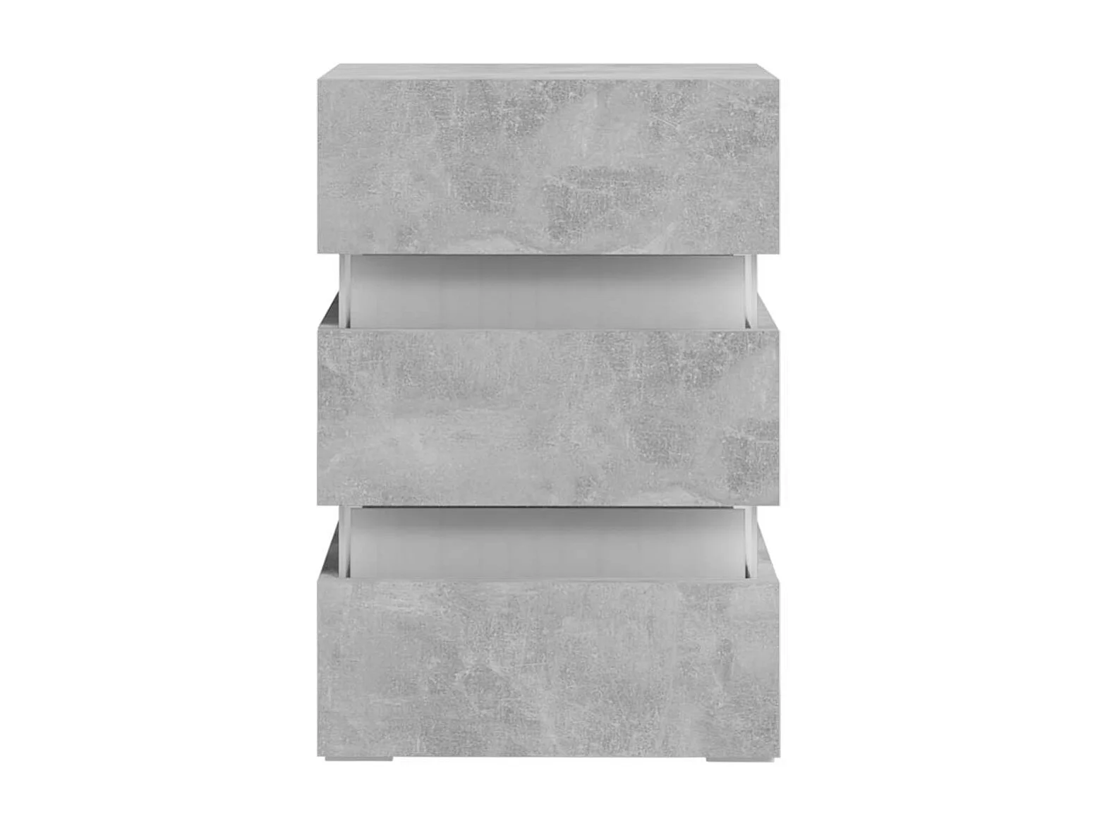 Armoire de chevet et lumières LED gris béton bois d'ingénierie