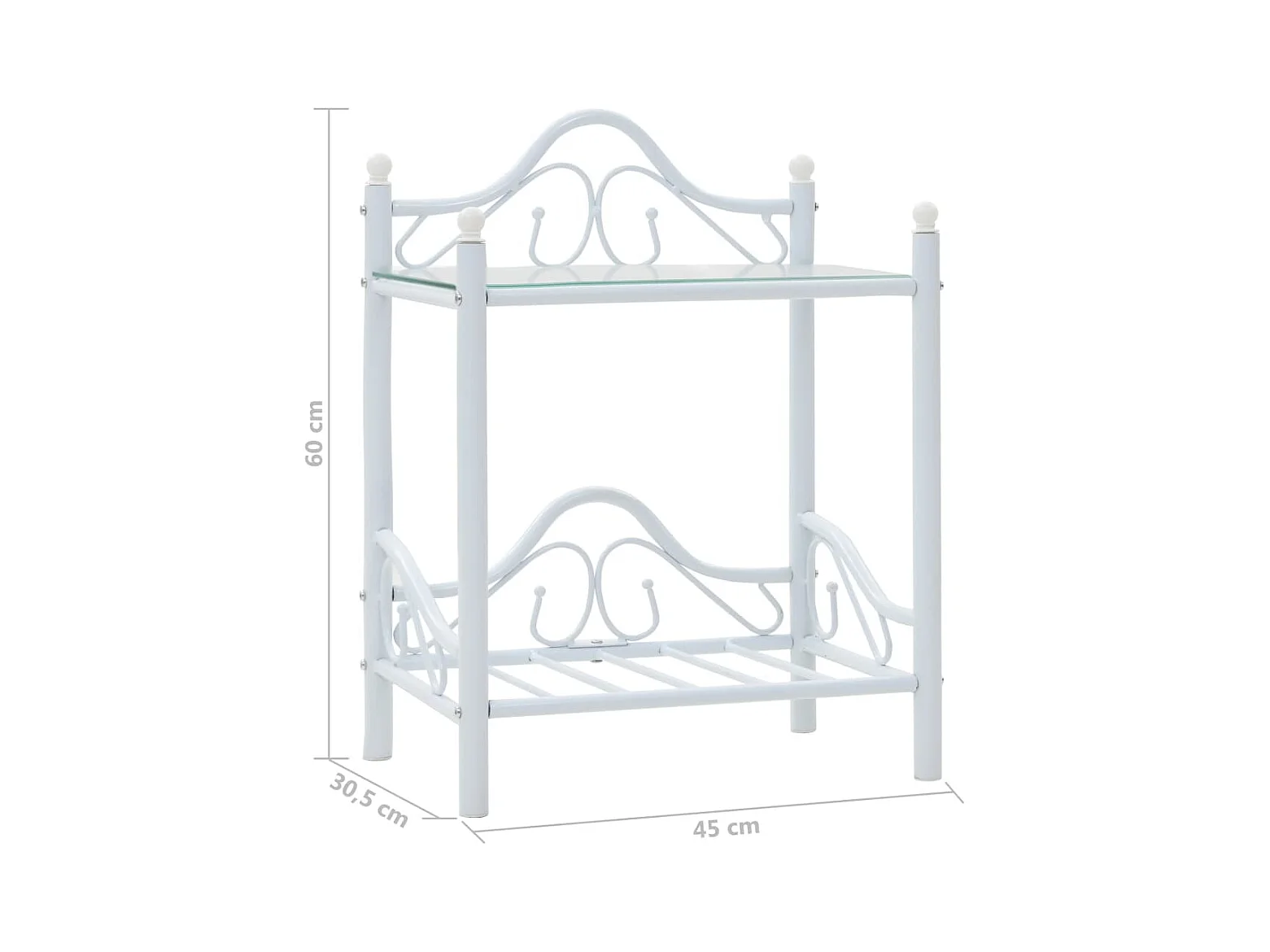 Table de chevet Acier et verre trempé 45 x 30,5 x 60 cm Blanc