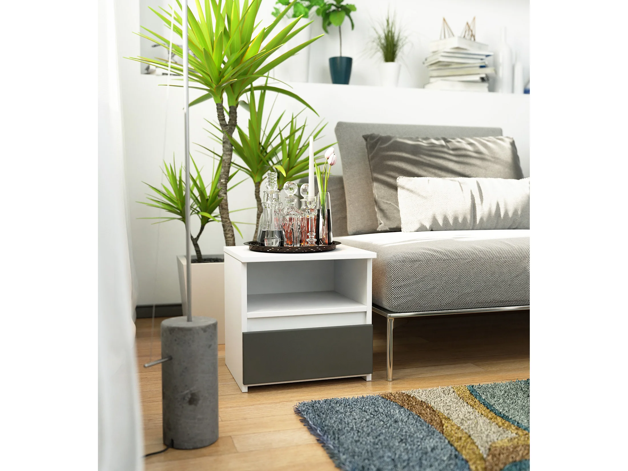Table de chevet AKORD CL1 Blanche 40 cm 1 tiroir façade Gris Graphite 1 étagère 40x35x40 cm