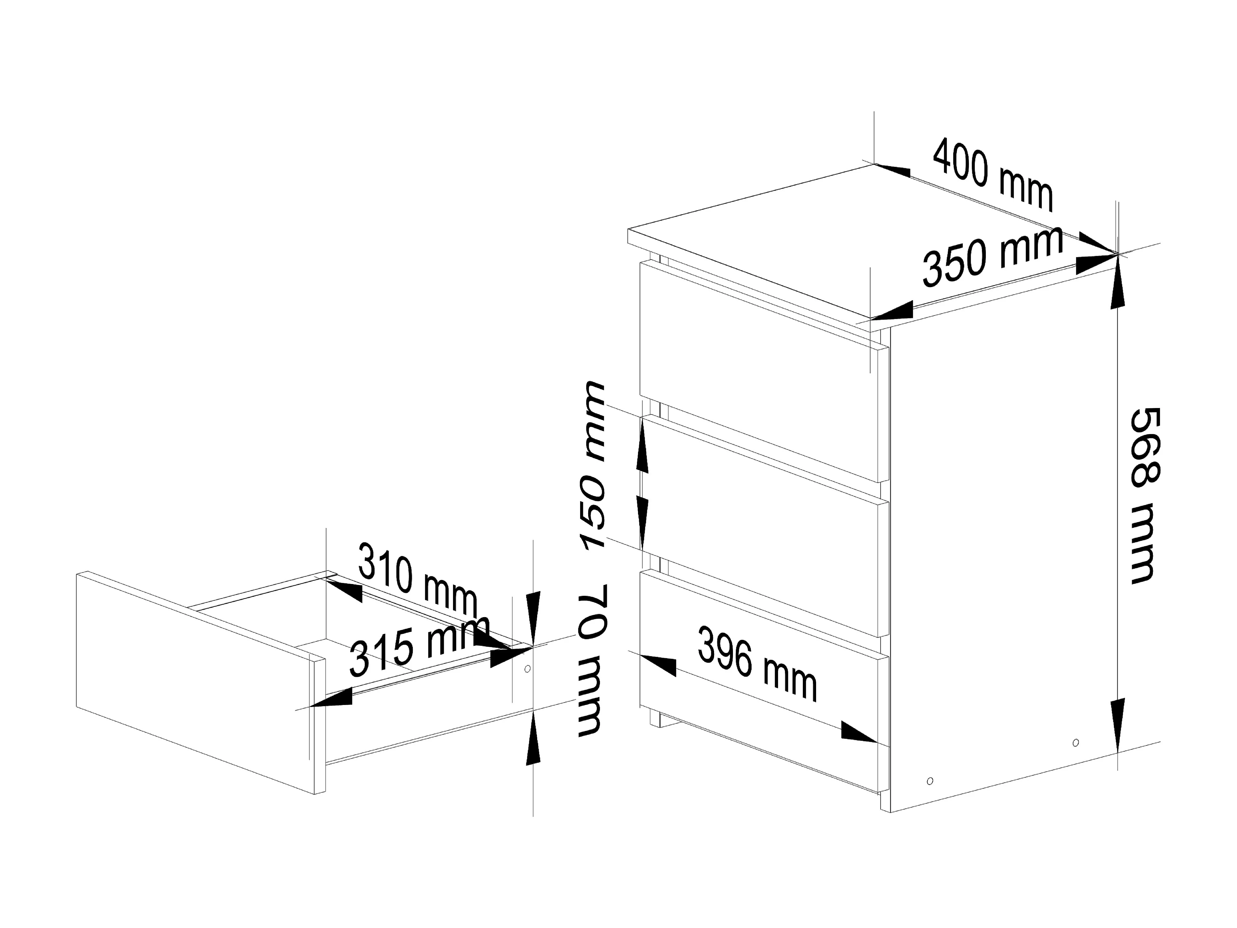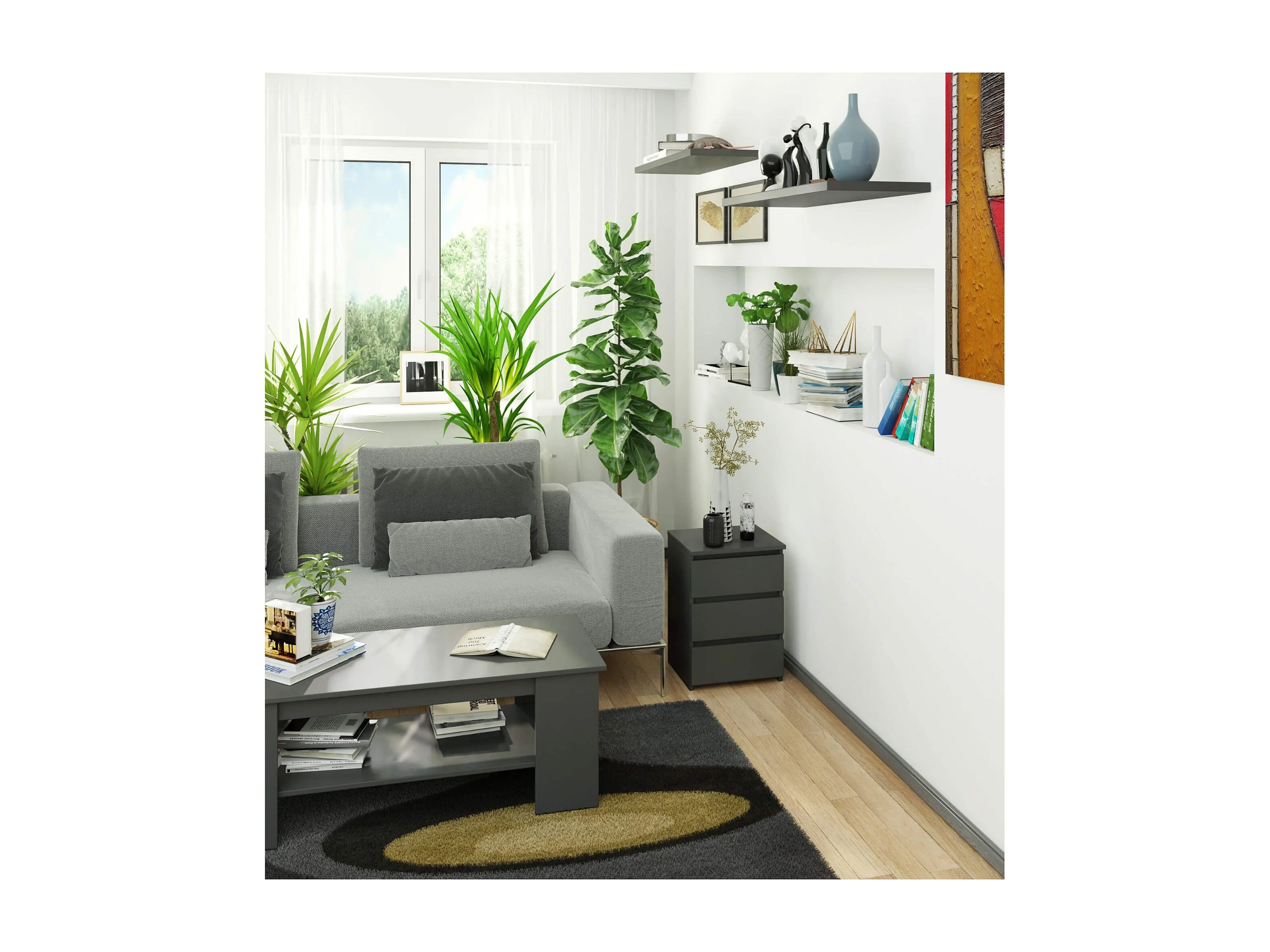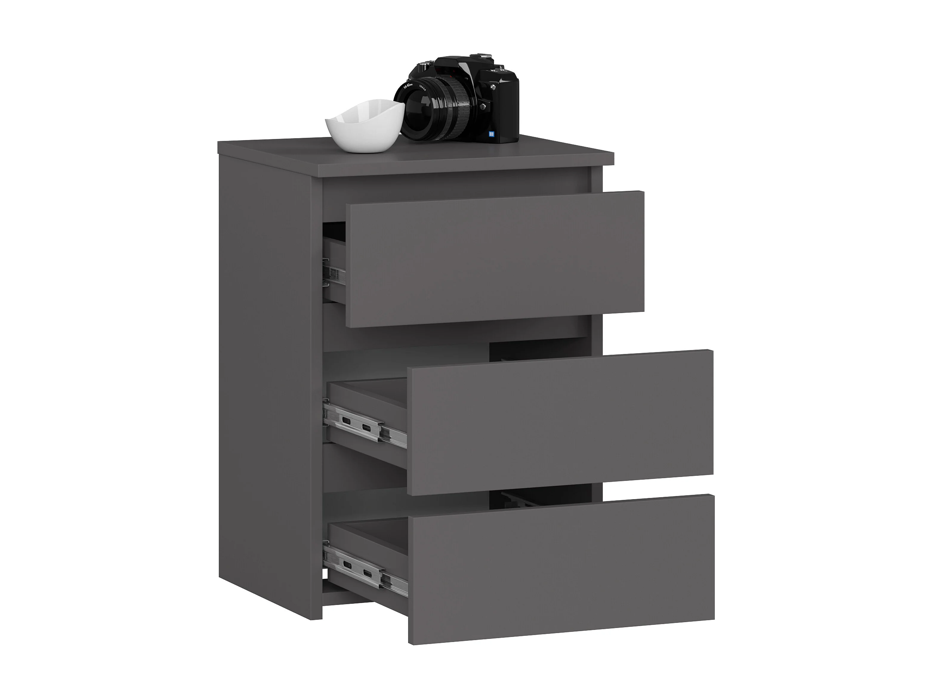 Table de chevet AKORD CL3 Gris Graphite 40 cm 3 tiroirs façade Gris Graphite 40x35x57 cm