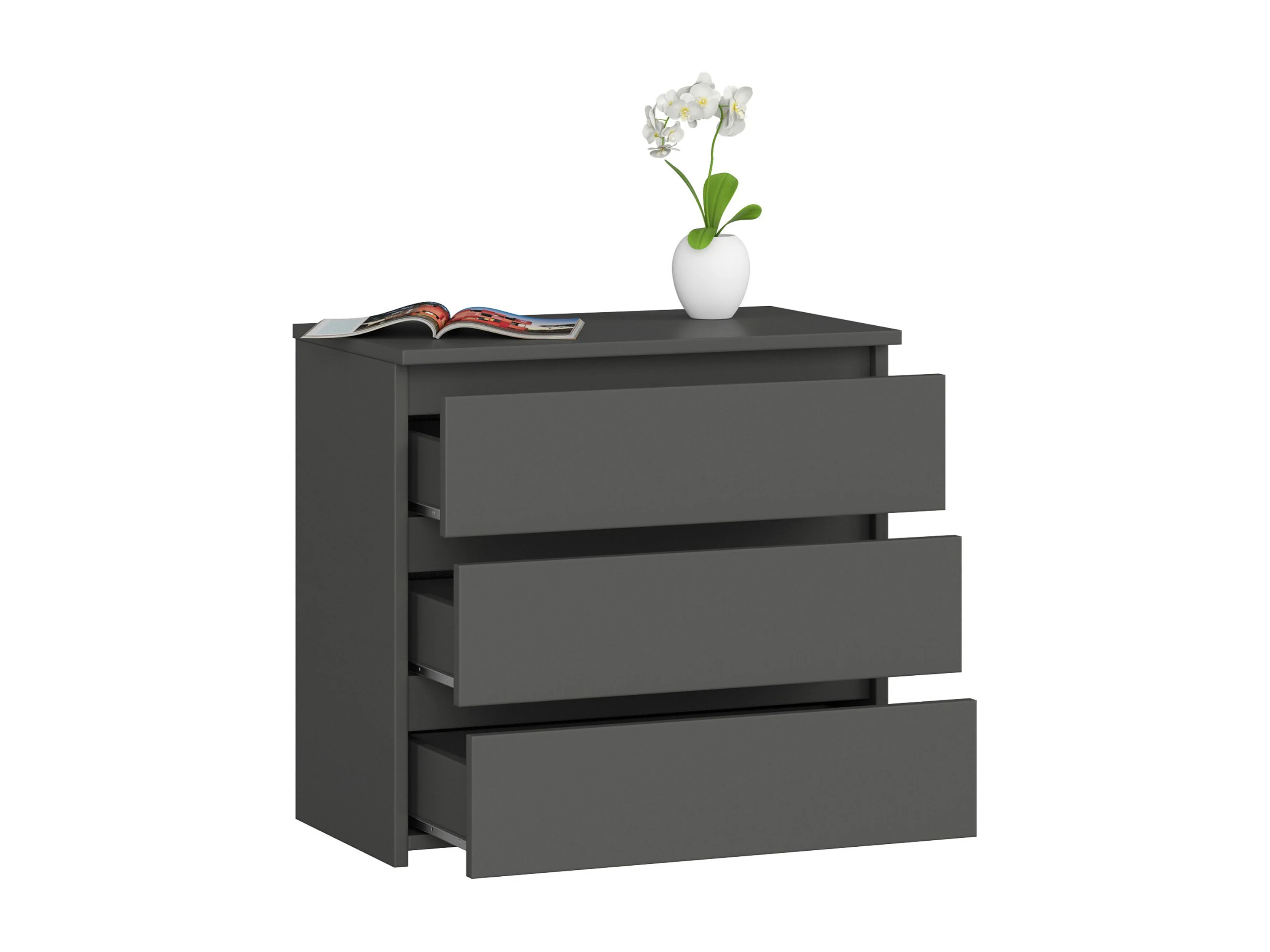 Table de chevet AKORD CL3 Gris Graphite 60 cm 3 tiroirs façade Gris Graphite 60x35x57 cm