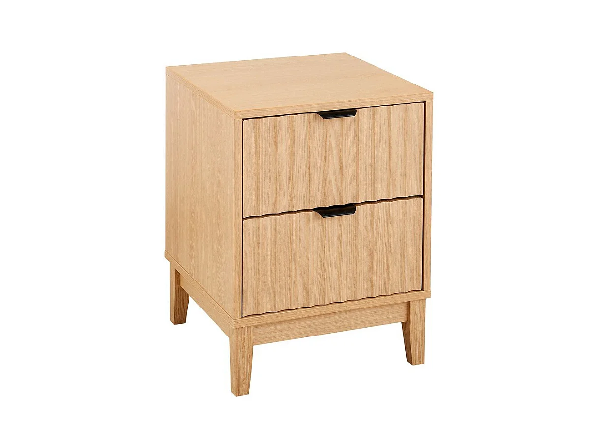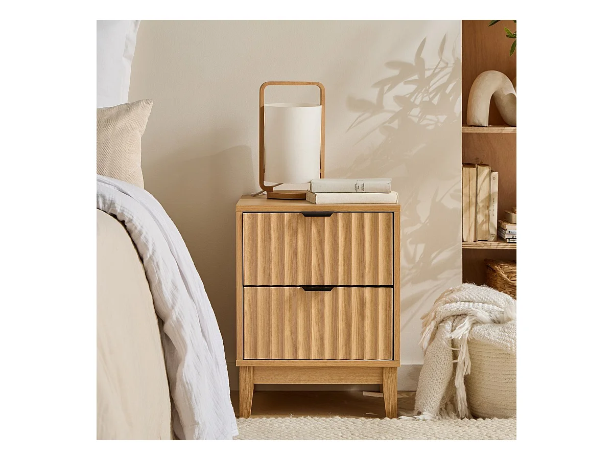 Table de chevet 2 tiroirs avec côtés effet rainuré H55 cm - MALAGA
