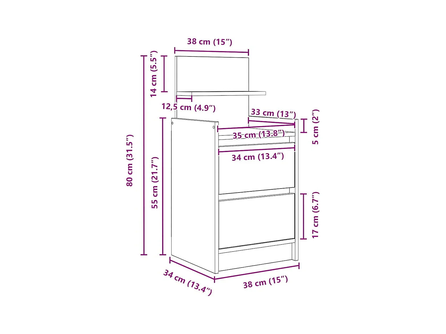 Table de chevet avec 2 tiroirs chêne sonoma 38x34x80 cm