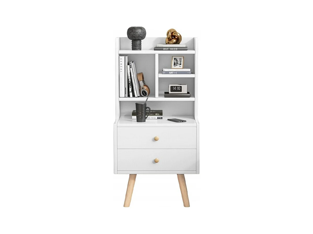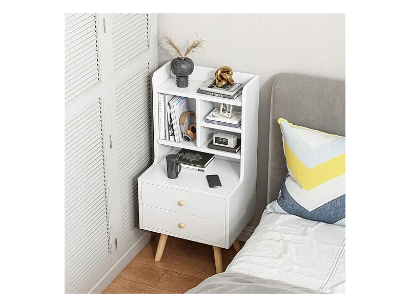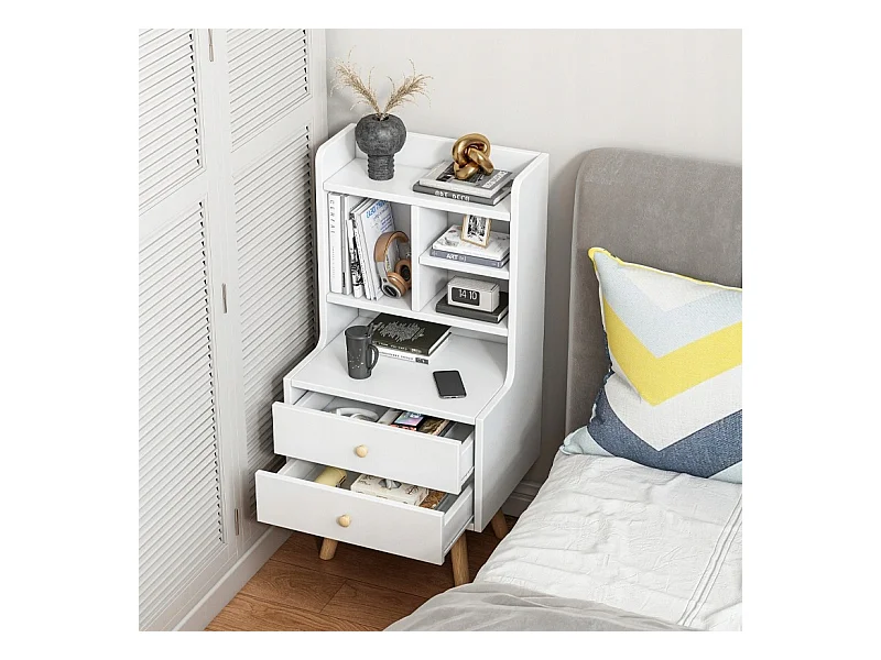 Table de chevet avec 2 tiroirs, étagère pour chambre à coucher