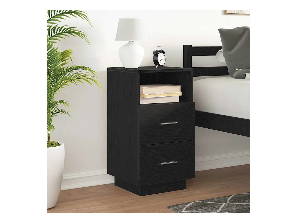 Table de chevet avec 2 tiroirs noir 36x36x68 cm